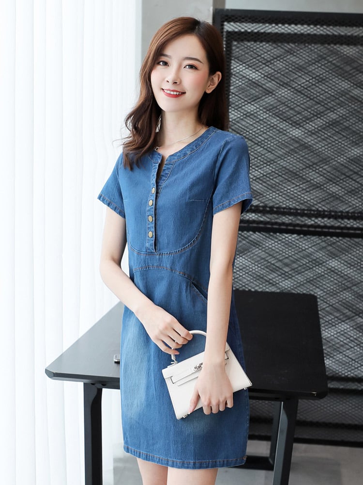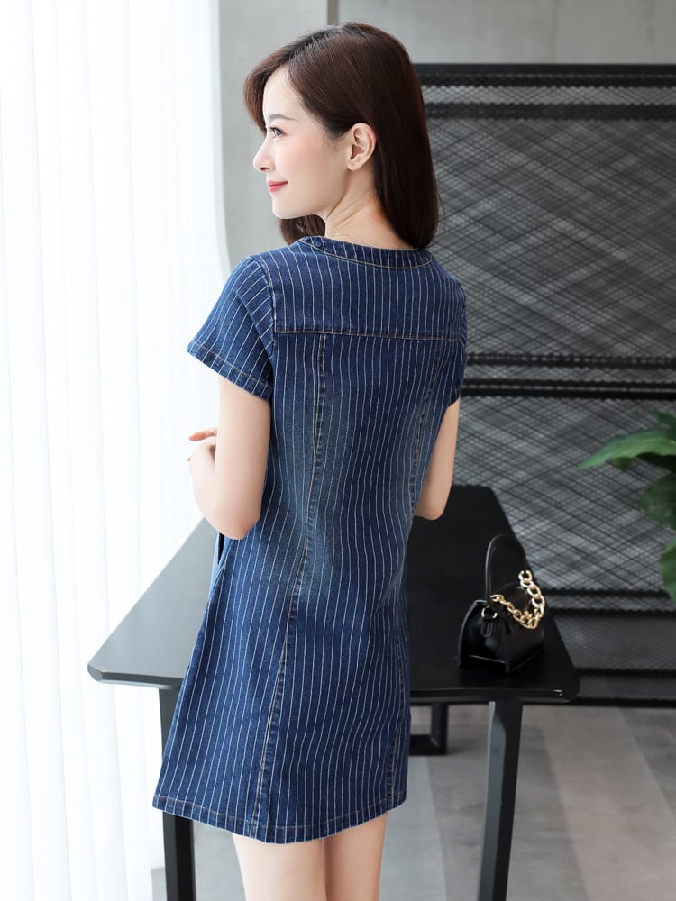 人気 韓国スタイル シンプル デニム ミニ ワンピース 半袖 スリム
