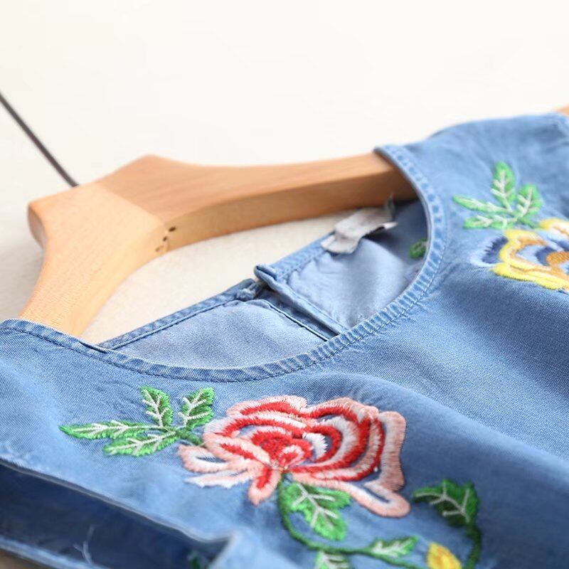 人気 韓国スタイル 刺繍 半袖 ストラップレス デニム ドレス