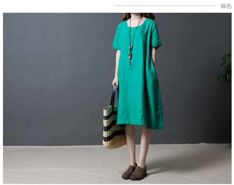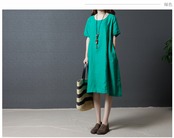人気 韓国スタイル コットンリネン ワンピース Aライン 半袖