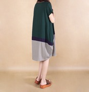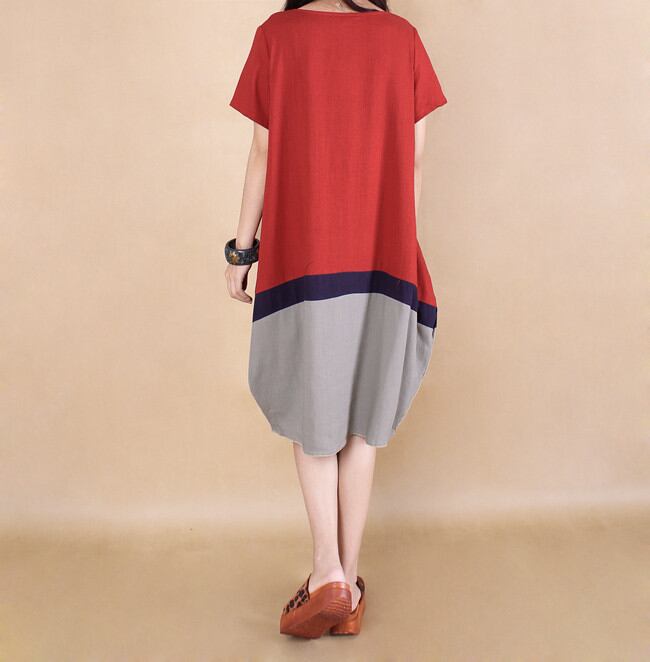 人気 韓国スタイル コットンリネン ワンピース バルーン ドレス 半袖