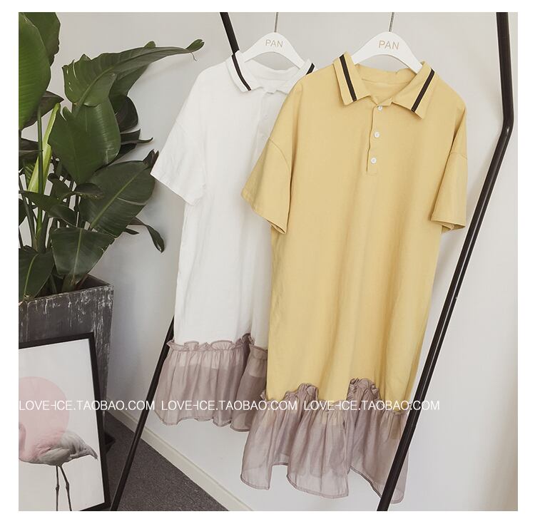 人気 韓国スタイル ポロシャツ ワンピース ローウェスト