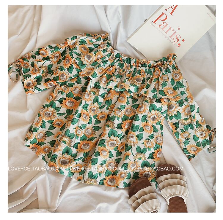 人気 韓国スタイル レトロ ボートネック7分袖 フラワープリント