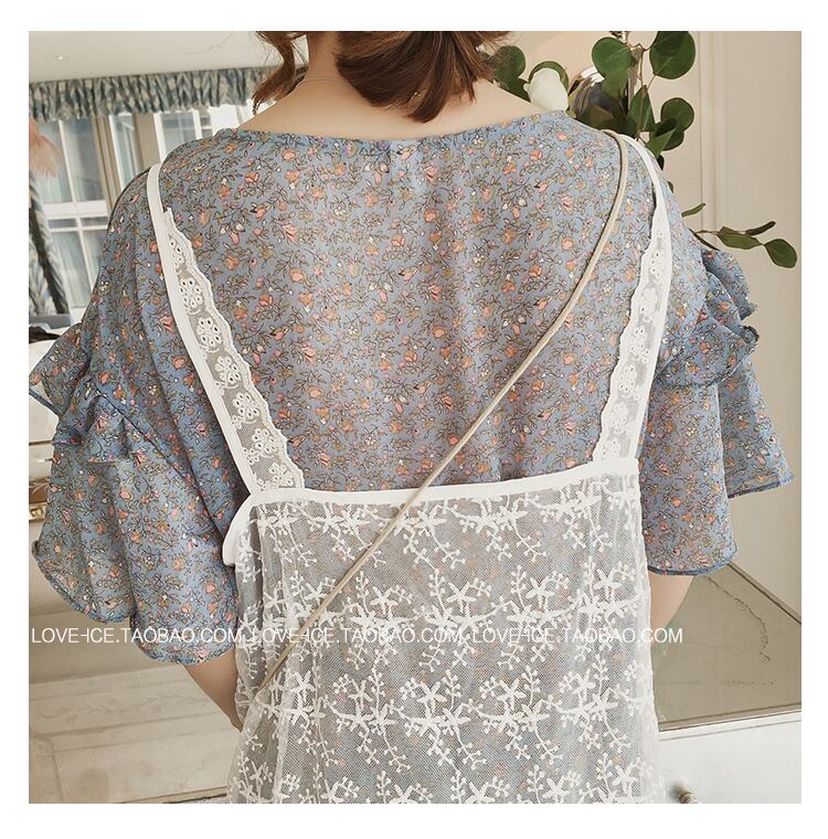 人気 韓国スタイル 半袖花柄 シフォンドレス レースドレス 2点セット