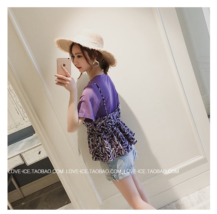人気 韓国スタイル Tシャツ&花ストラップキャミソール