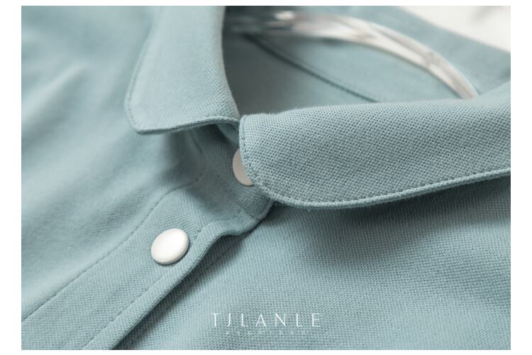 通気性がよく柔らかな着心地のポロワンピース。長く着られるシンプルでベーシックなスタイル。ボタンの色がかわいい♪スニーカーでもサンダルでも相性◎
