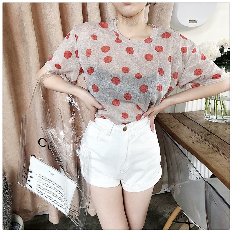 少し大きめに作られたドット柄のクルーネックTシャツ。爽やかなドットが夏にぴったり♪オーバーサイズのTシャツにはタイトなボトムスがGood♪