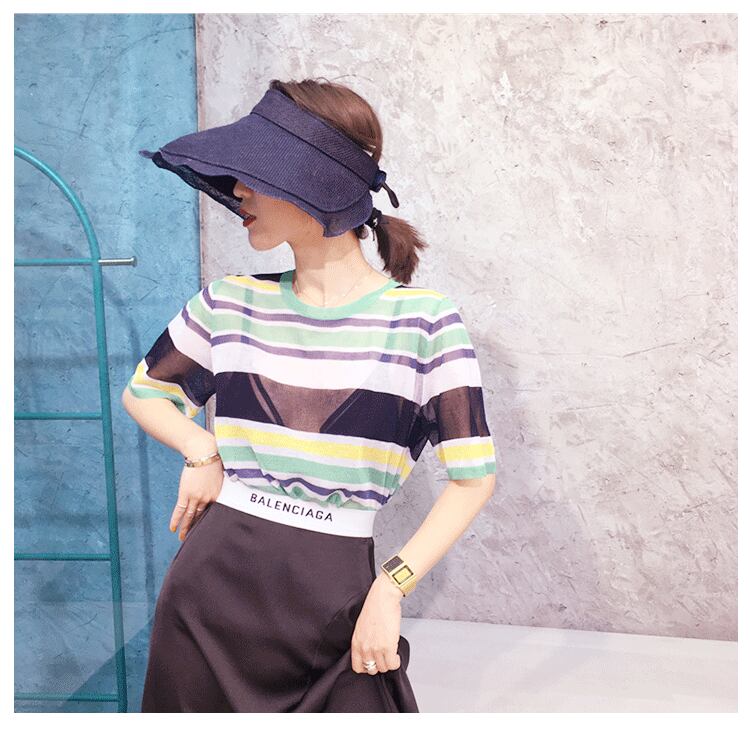 涼しげなシースルーのトップス。ボーダーが爽やか♪ キャミソールや見せブラをインに着てリゾートでもタウンでも♪