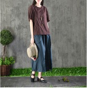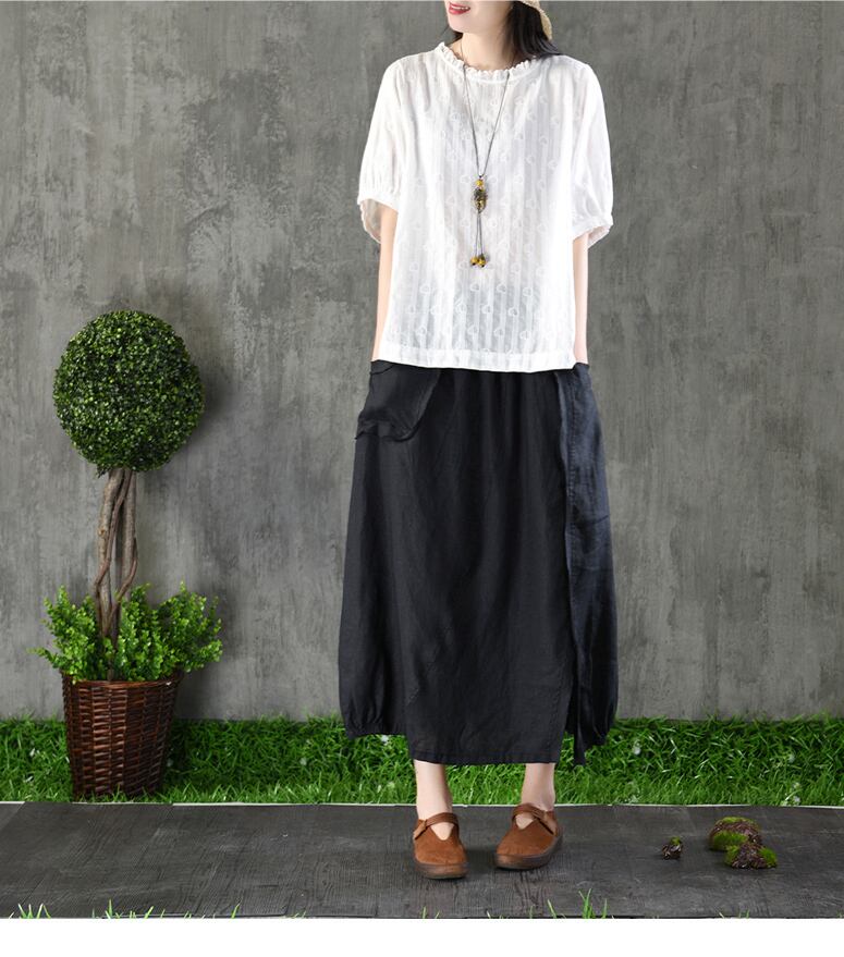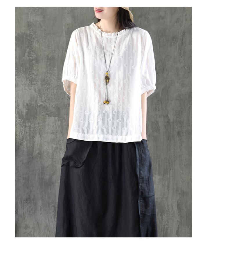 コットン刺繍シャツ 5分袖 プレーンブラウス
