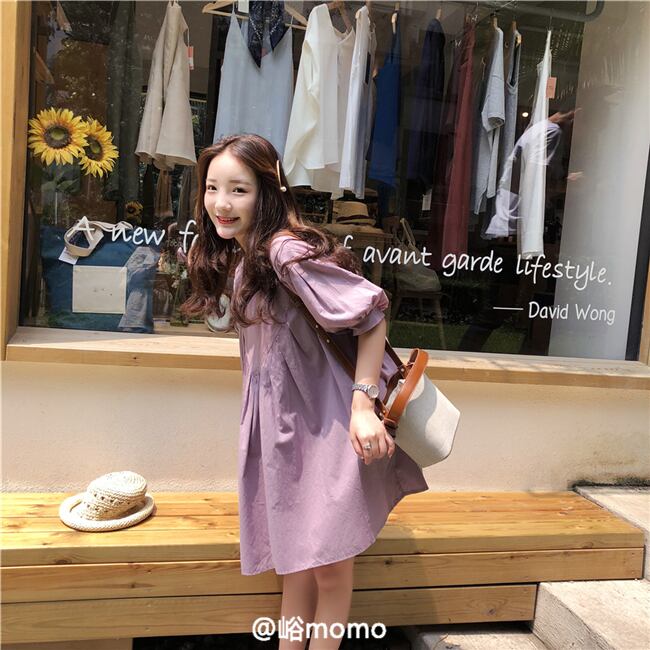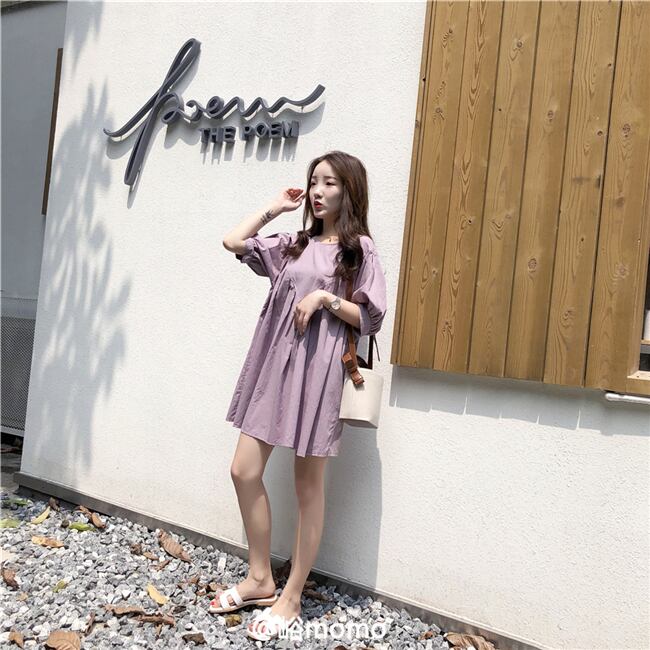 人気 韓国スタイル Aライン ベビードールドレス 5分袖