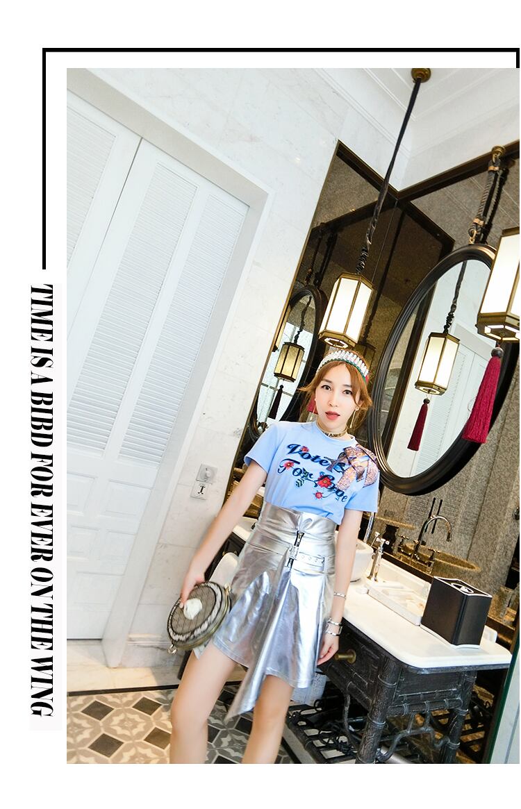 人気 韓国スタイル ラメリボン コットン半袖ラウンドネック Tシャツ