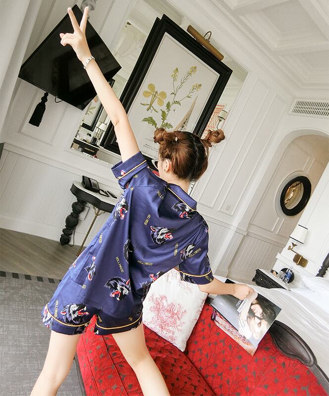 人気 韓国スタイル シルク ウルフ オオカミ レターパターン パジャマセット