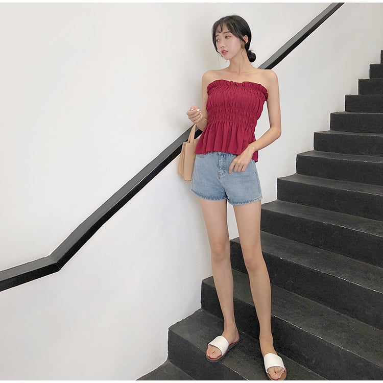 人気 韓国スタイル チューブトップ スリムショート ストラップレス タンクトップ