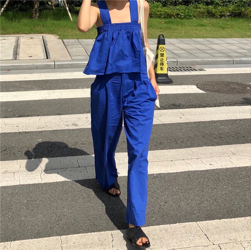 人気 韓国スタイル キャミソール+ルーズワイドレッグパンツ 2点セット