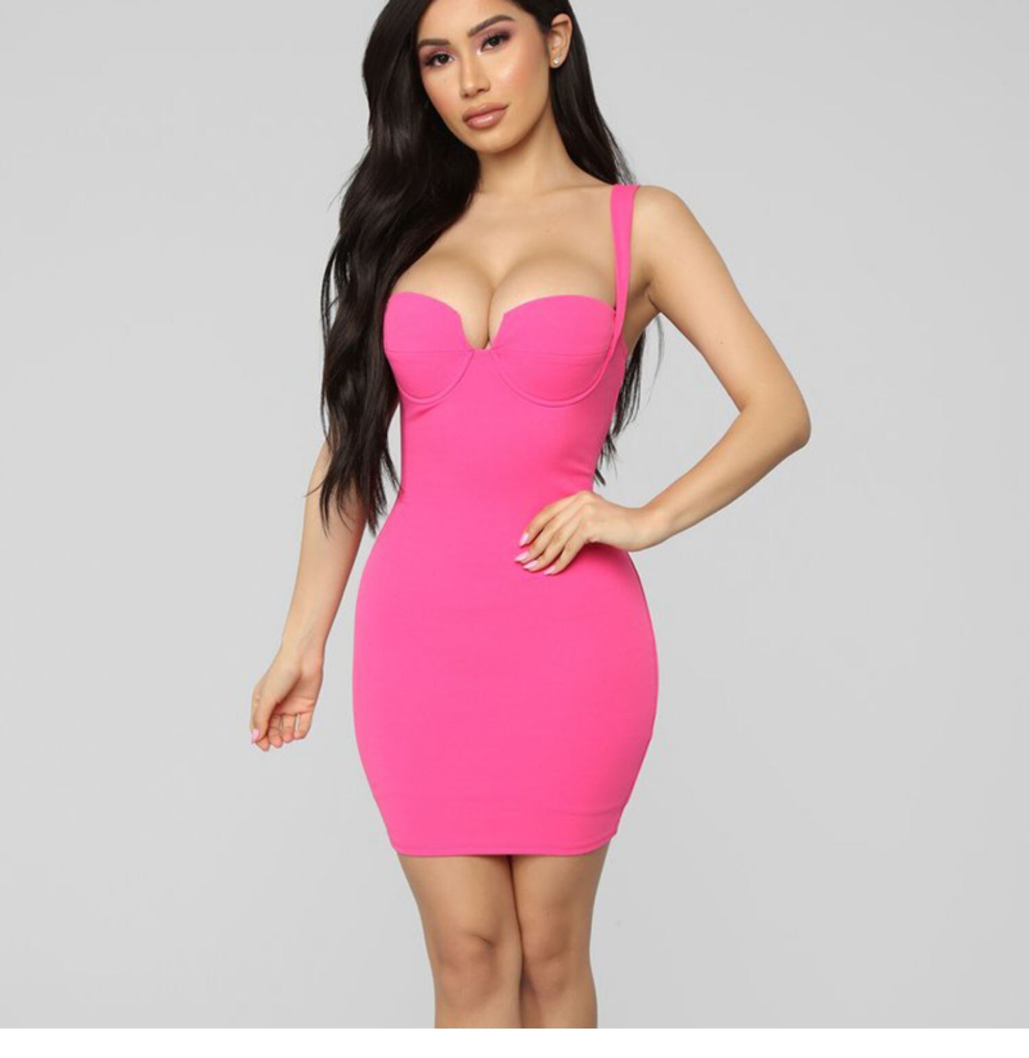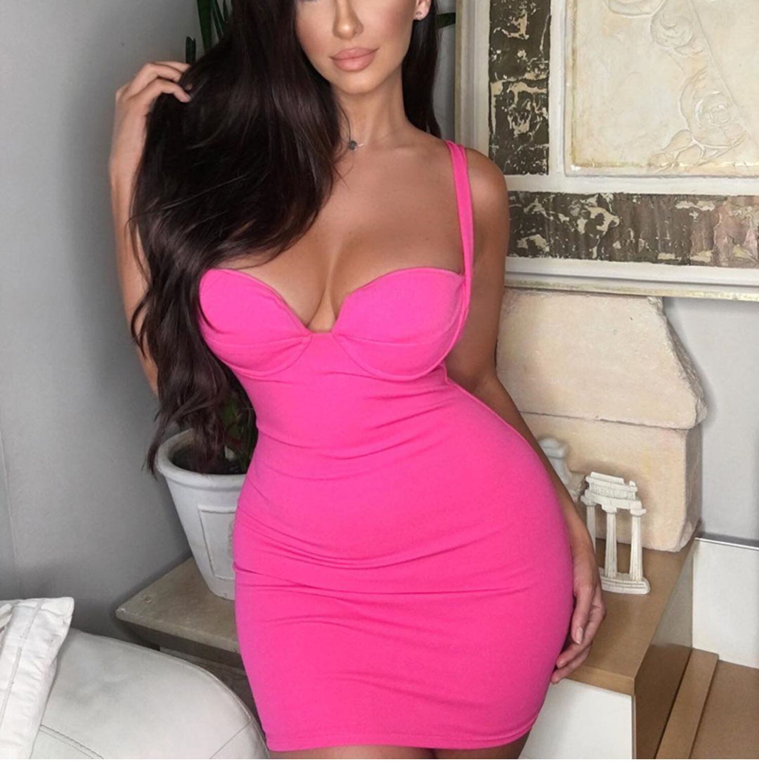 インスタヨーロッパとアメリカのinsサスペンダードレスレディースファッションvネックセクシータイトフィットスリム薄い野生のバッグヒップスカートの潮 ヨーロピアン instahot8315244