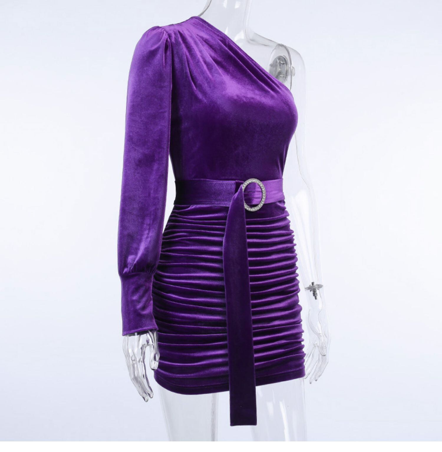instaot斜めの襟のシングルスリーブのセクシーなドレスの女性のヨーロッパとアメリカの春と秋の新しいウエストスリムプリーツスカート スプリング 春物 オータム 秋物 ヨーロピアン instahot8020063