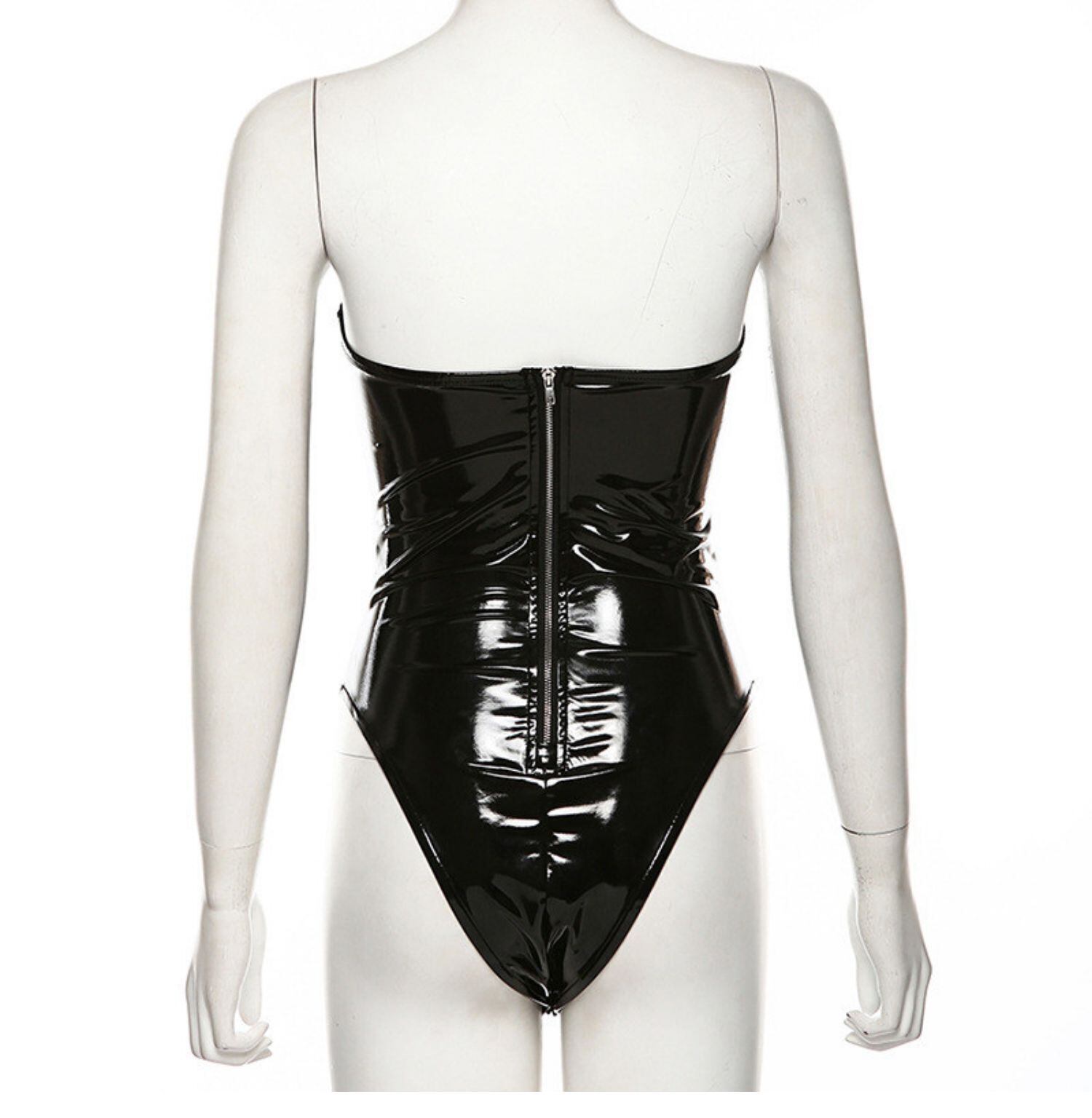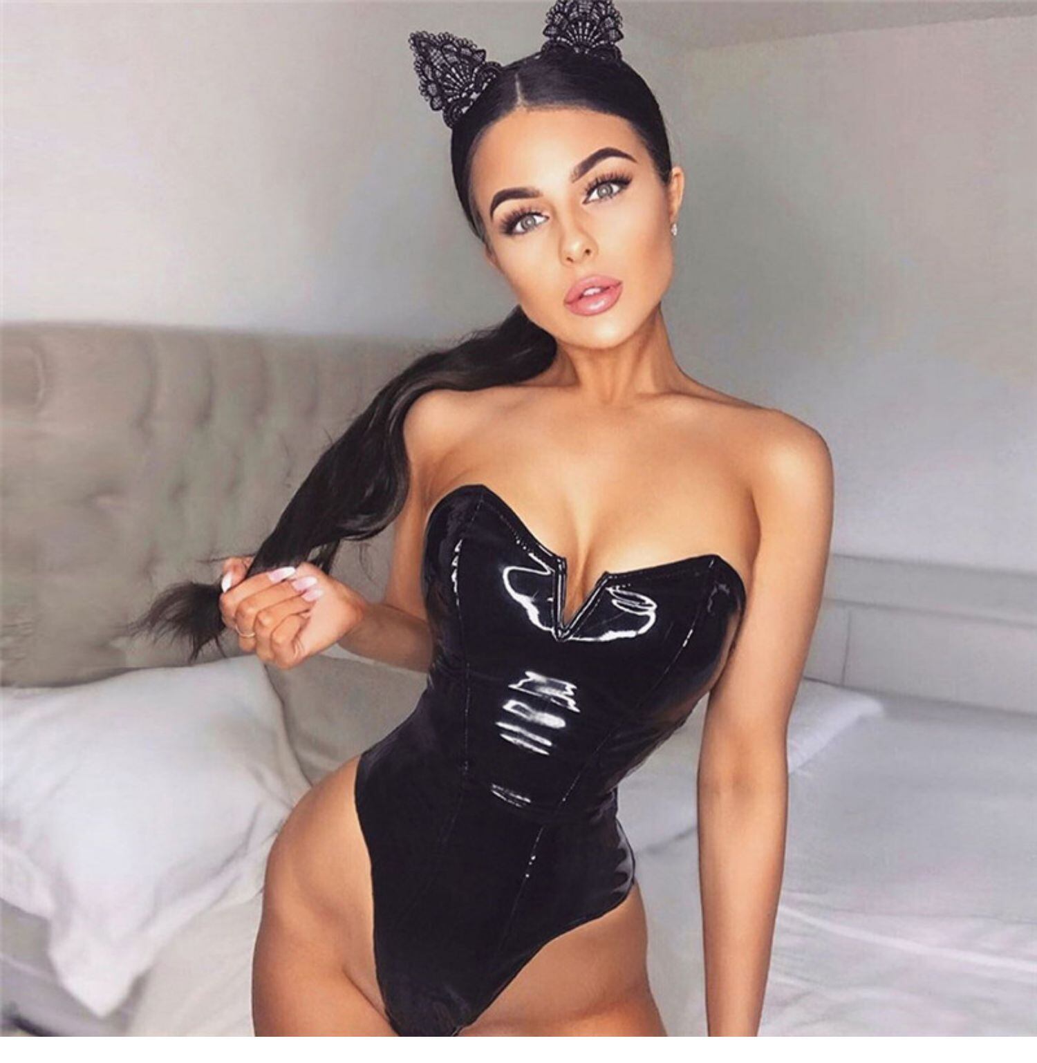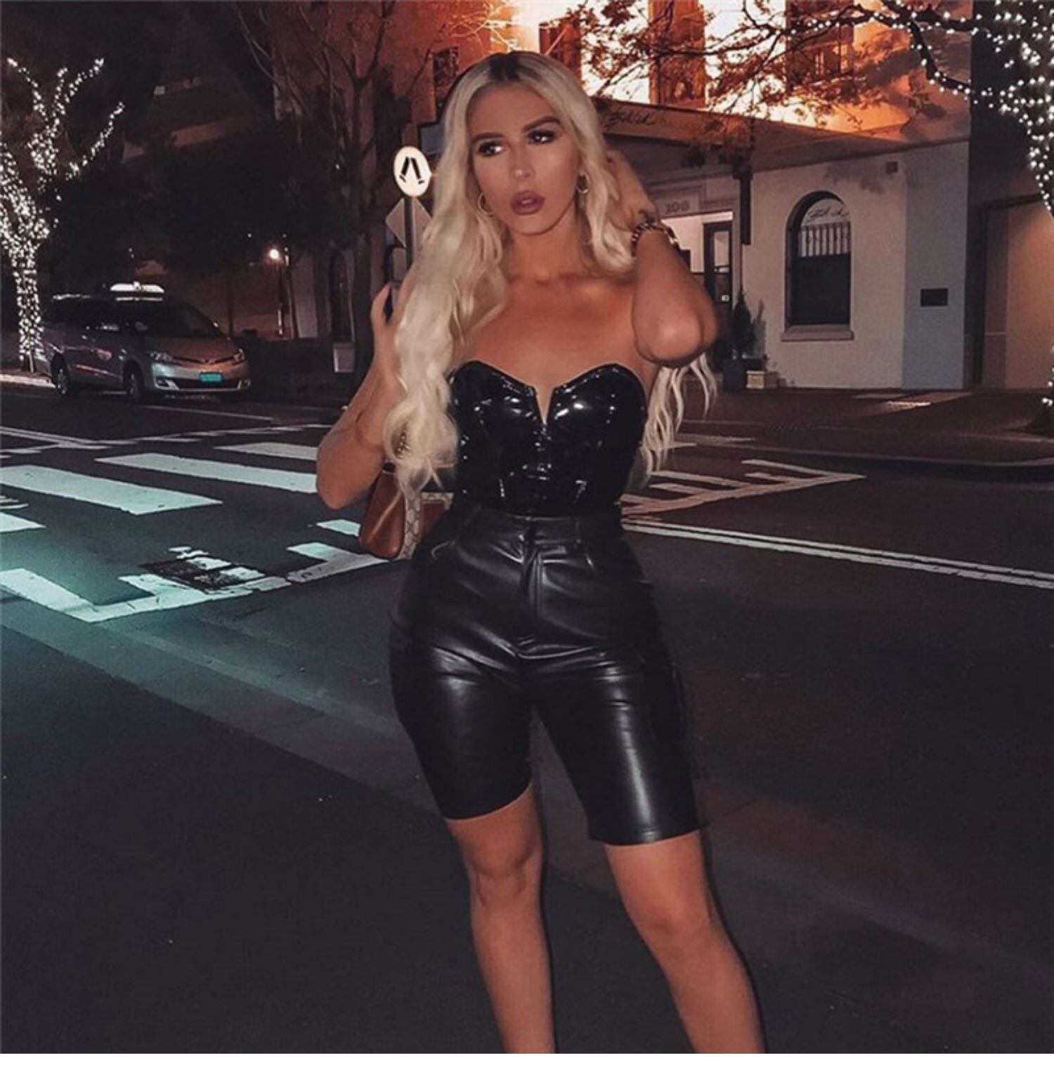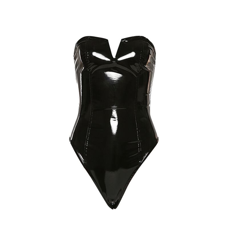 セクシーなVネックPUワンピースベスト女性のヨーロッパとアメリカの春と秋の新しいファッション気質スリムジッパー人格シャツ潮 スプリング 春物 オータム 秋物 ヨーロピアン instahot6979901