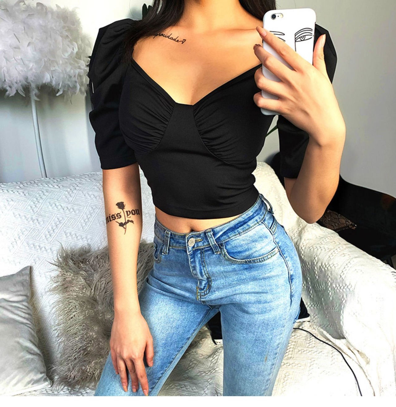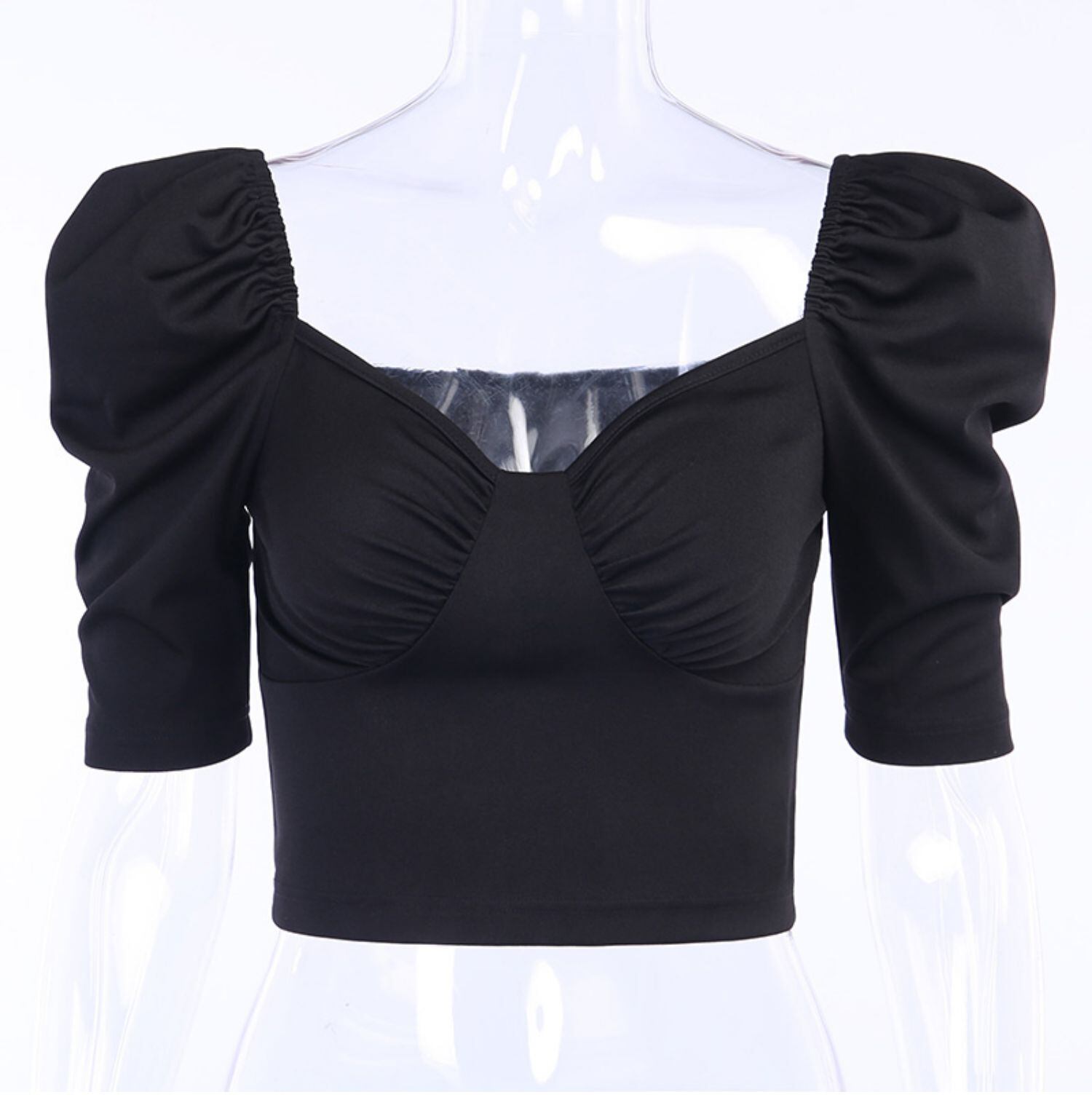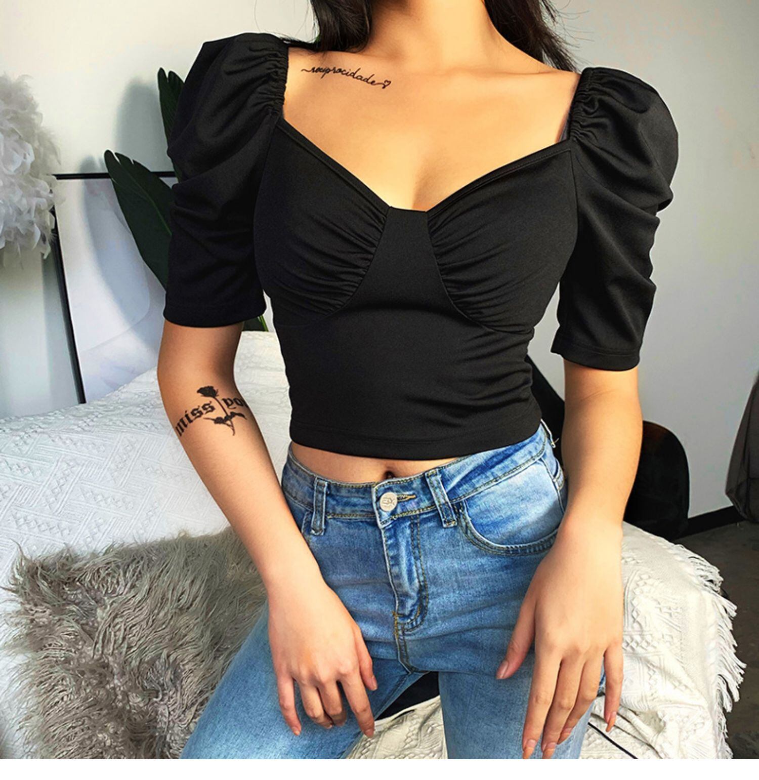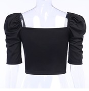 インスタフレンチレトロニッチショートTシャツ女性のファッション宮殿スタイルロー胸セクシーなバブルスリーブトップ潮 レース instahot4657129