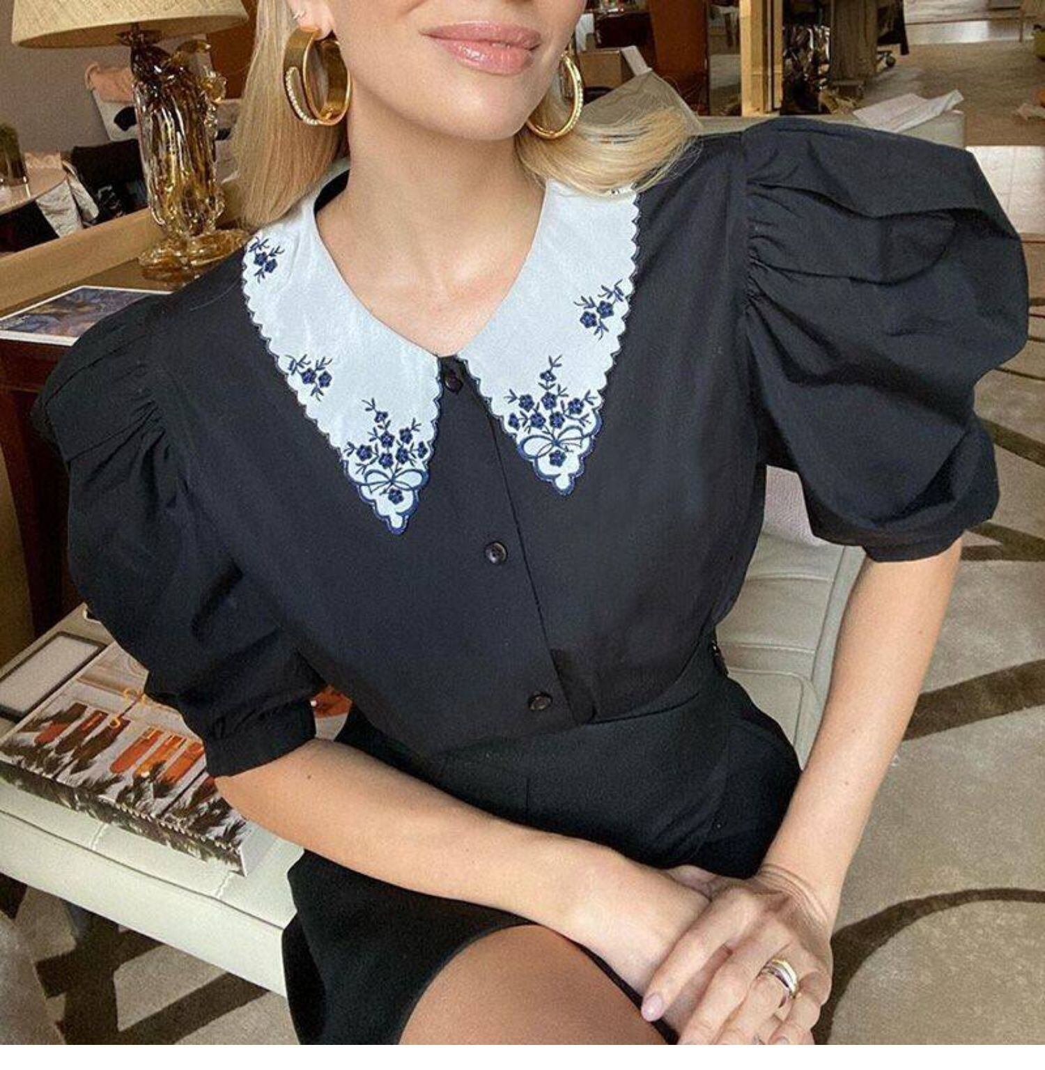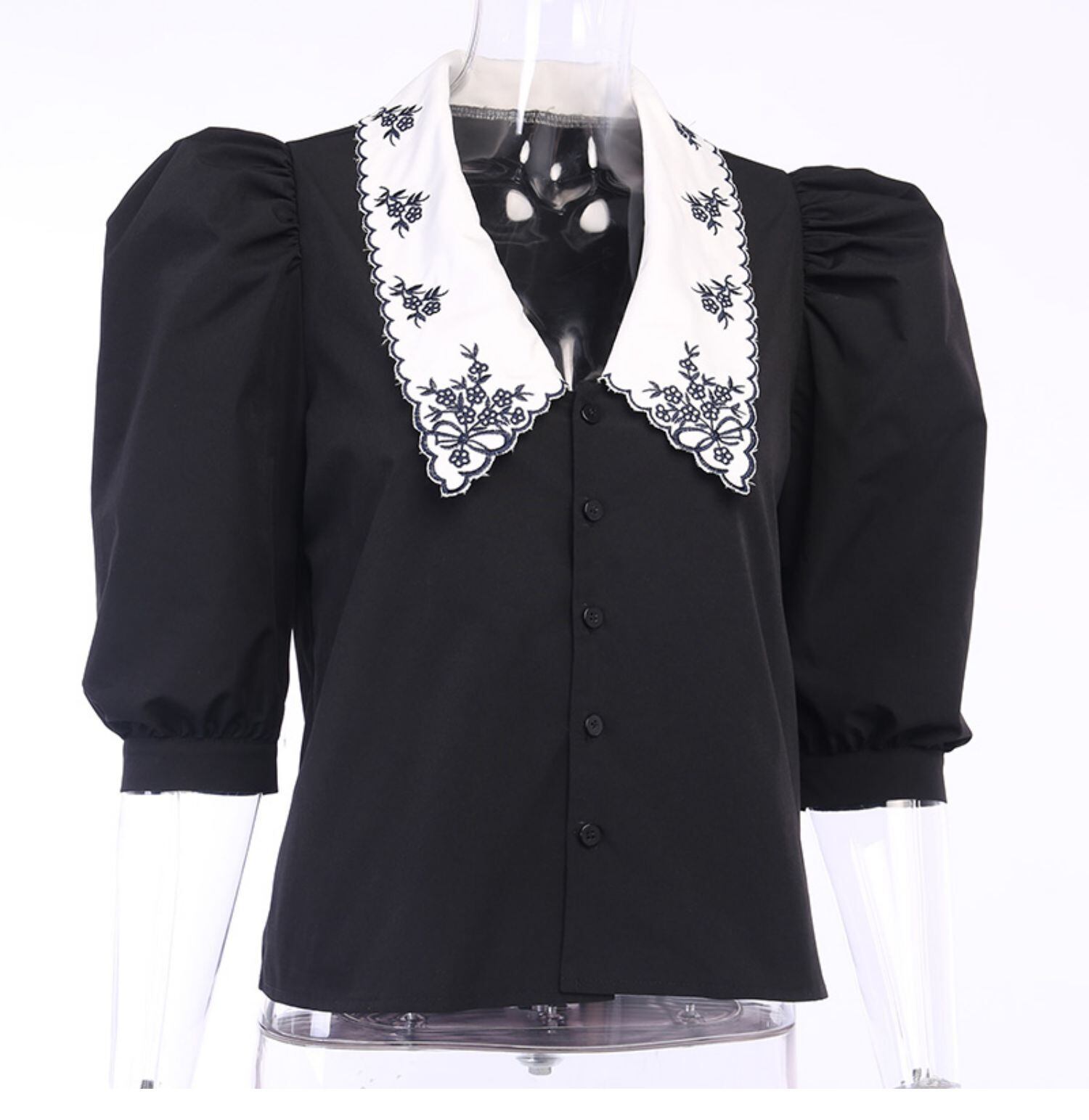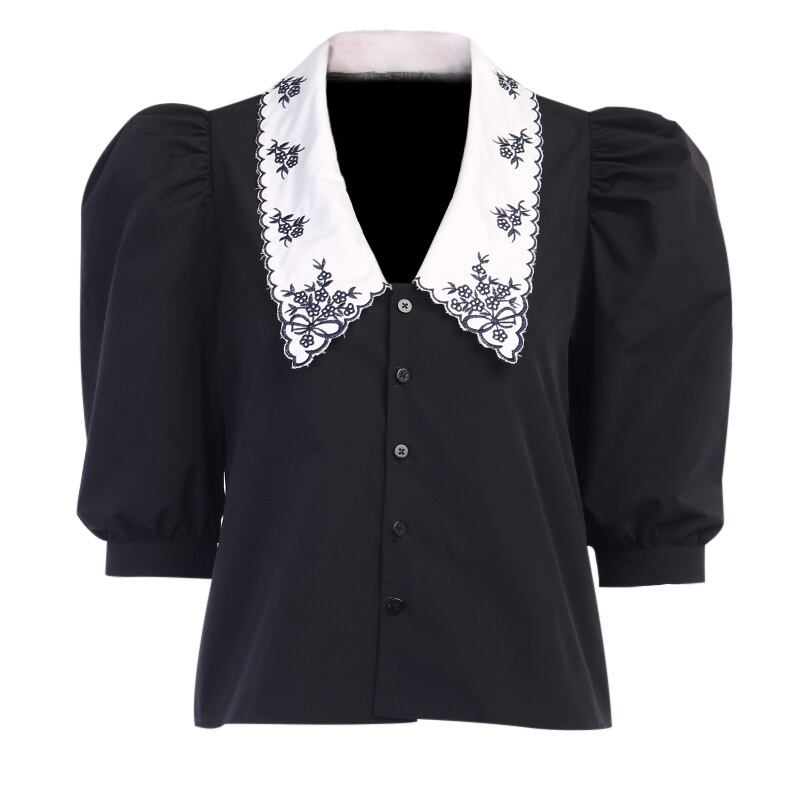 インスタ刺繍の人形の襟のバブルスリーブシャツの女性のヨーロッパとアメリカのinsネット赤と同じルーズルーズシャツの潮 レッド ヨーロピアン instahot7949216