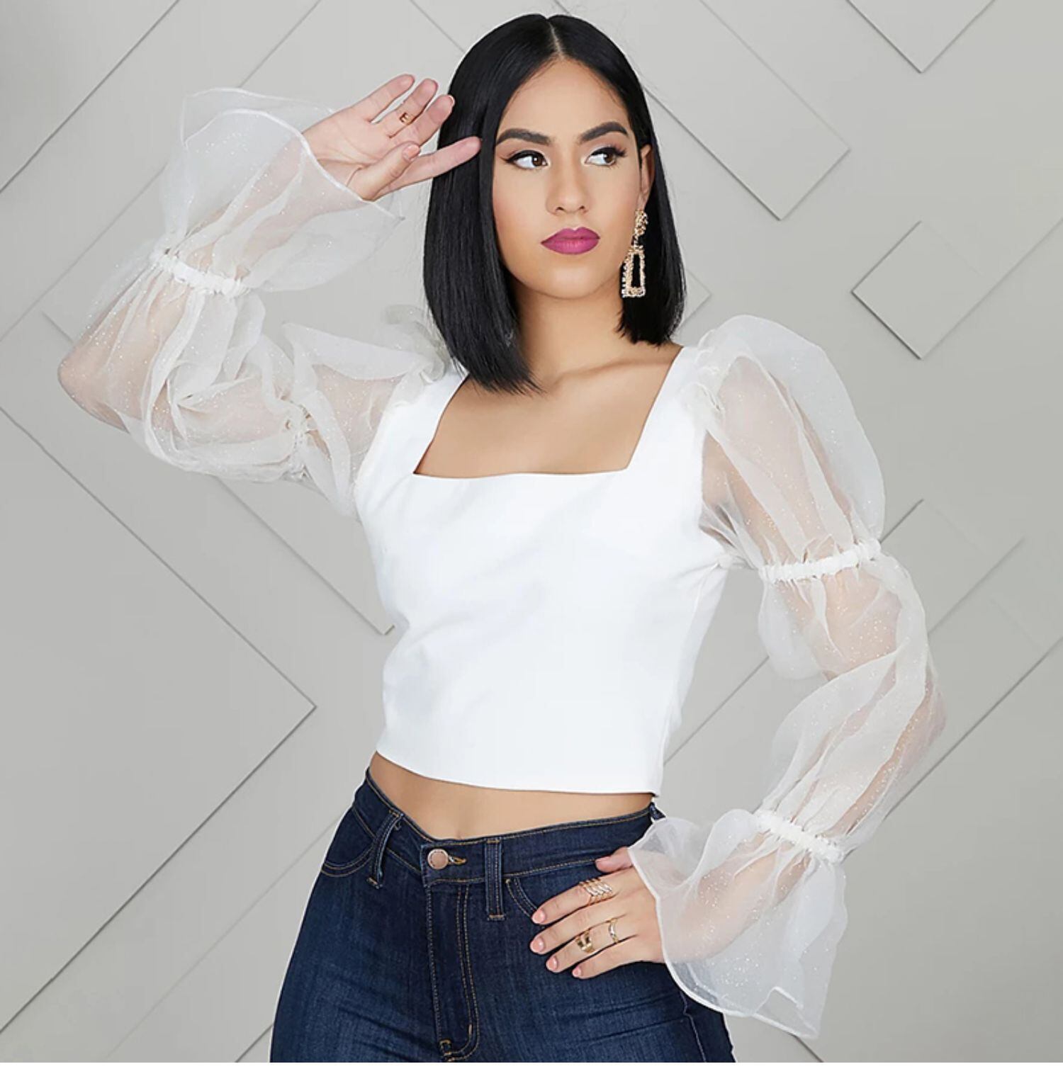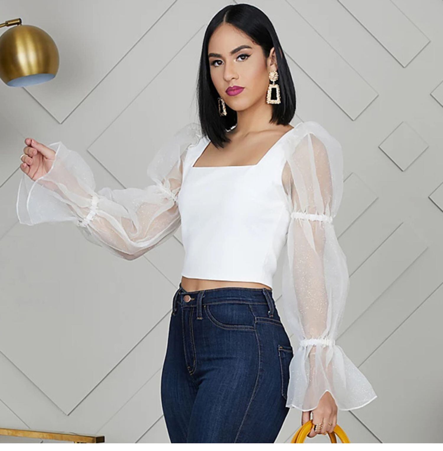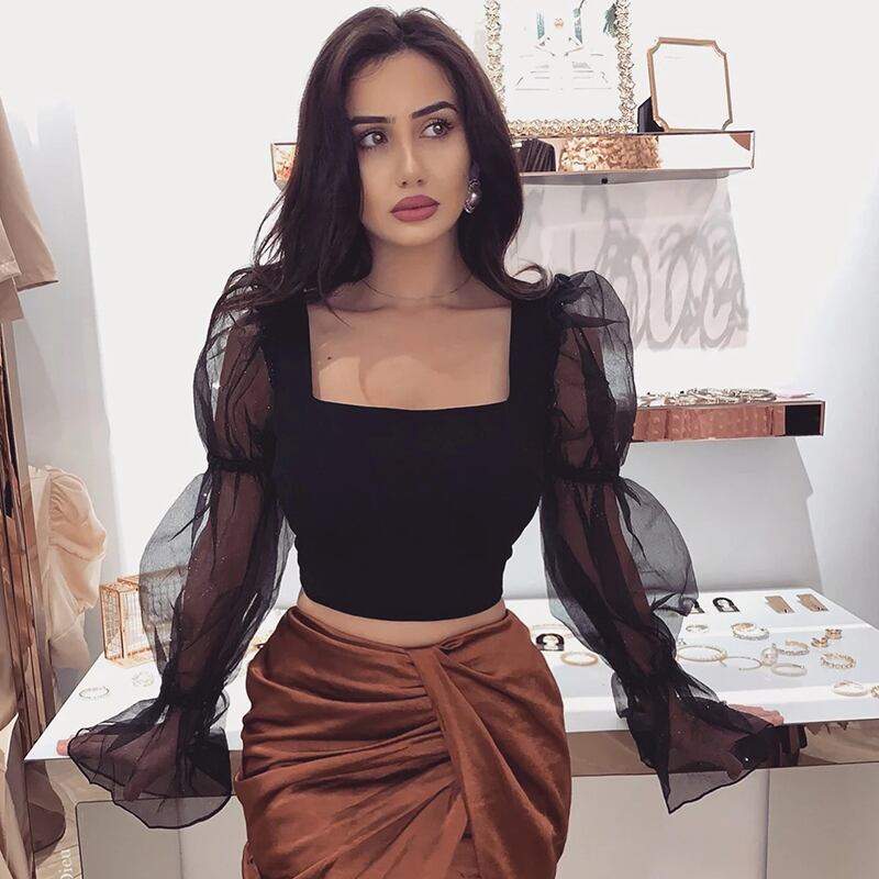 ヨーロッパとアメリカのinsのショートコートの女性の秋の長袖のエインスタイルのスクエアカラーのハイウエスト露出おへそステッチメッシュ気質野生のTシャツの潮 ハイウェスト ロング オータム 秋物 スクウェア ヨーロピアン instahot9684289
