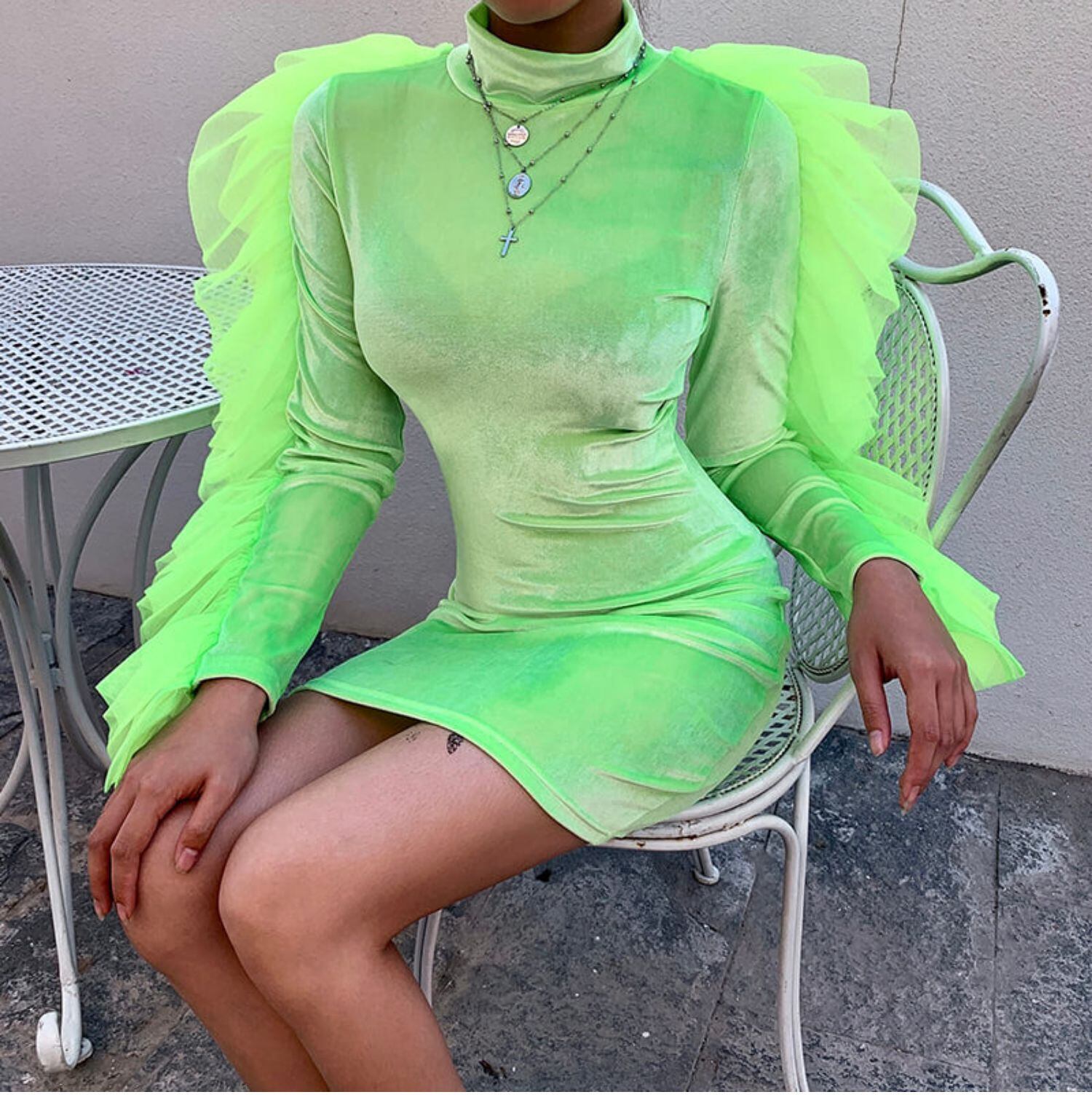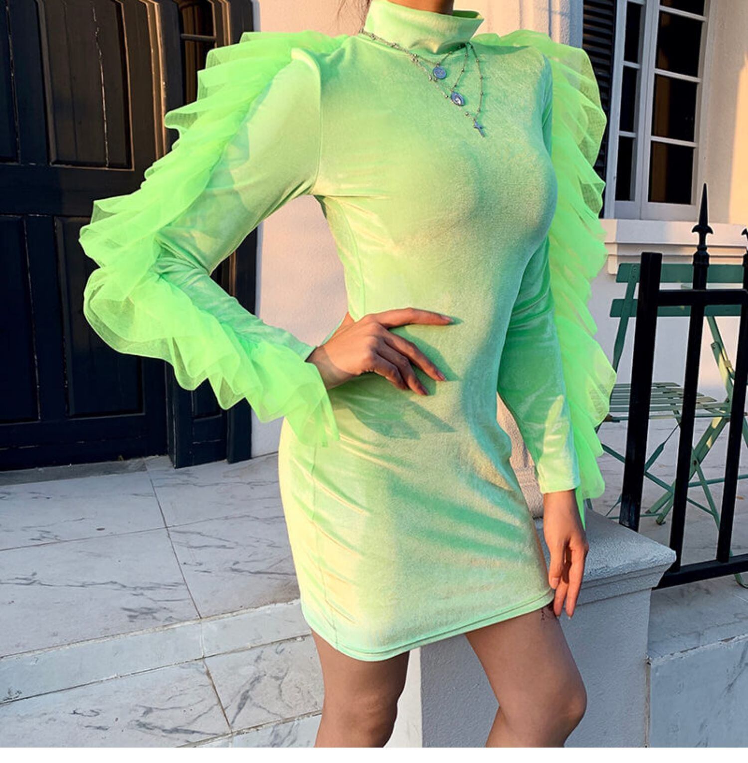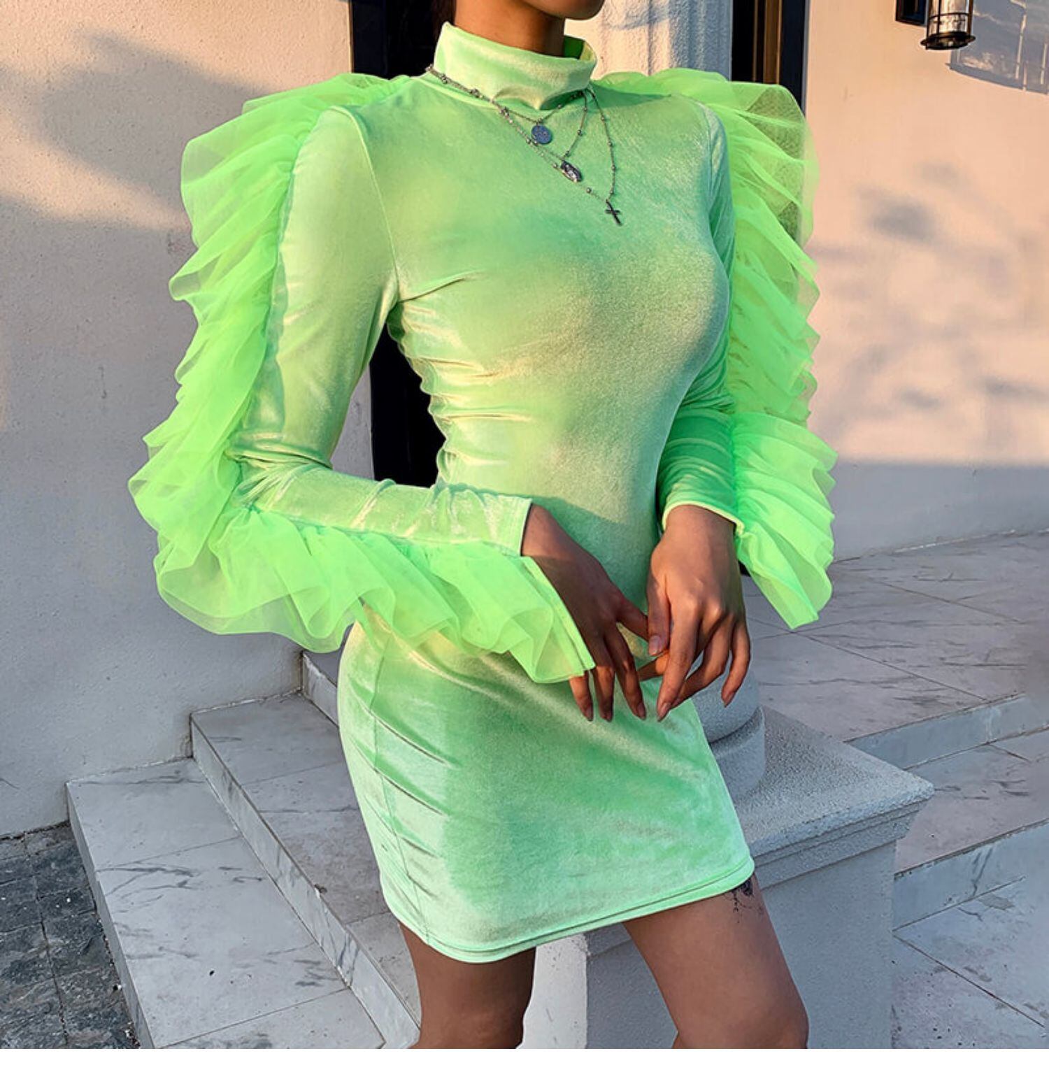 ステッチの誇張された長袖のドレスの女性2020年のヨーロッパとアメリカのインス新しいハイネックファッション気質ミドル丈バッグヒップスカート ロング ヨーロピアン instahot6357666