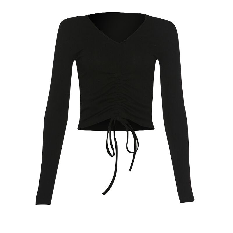 ヨーロッパとアメリカのins冬の新しいVネック巾着露出したへそ長袖Tシャツ女性のデザインセンススリムスリミング野生のシャツの潮 ロング ウィンター 冬物 ヨーロピアン instahot8992332