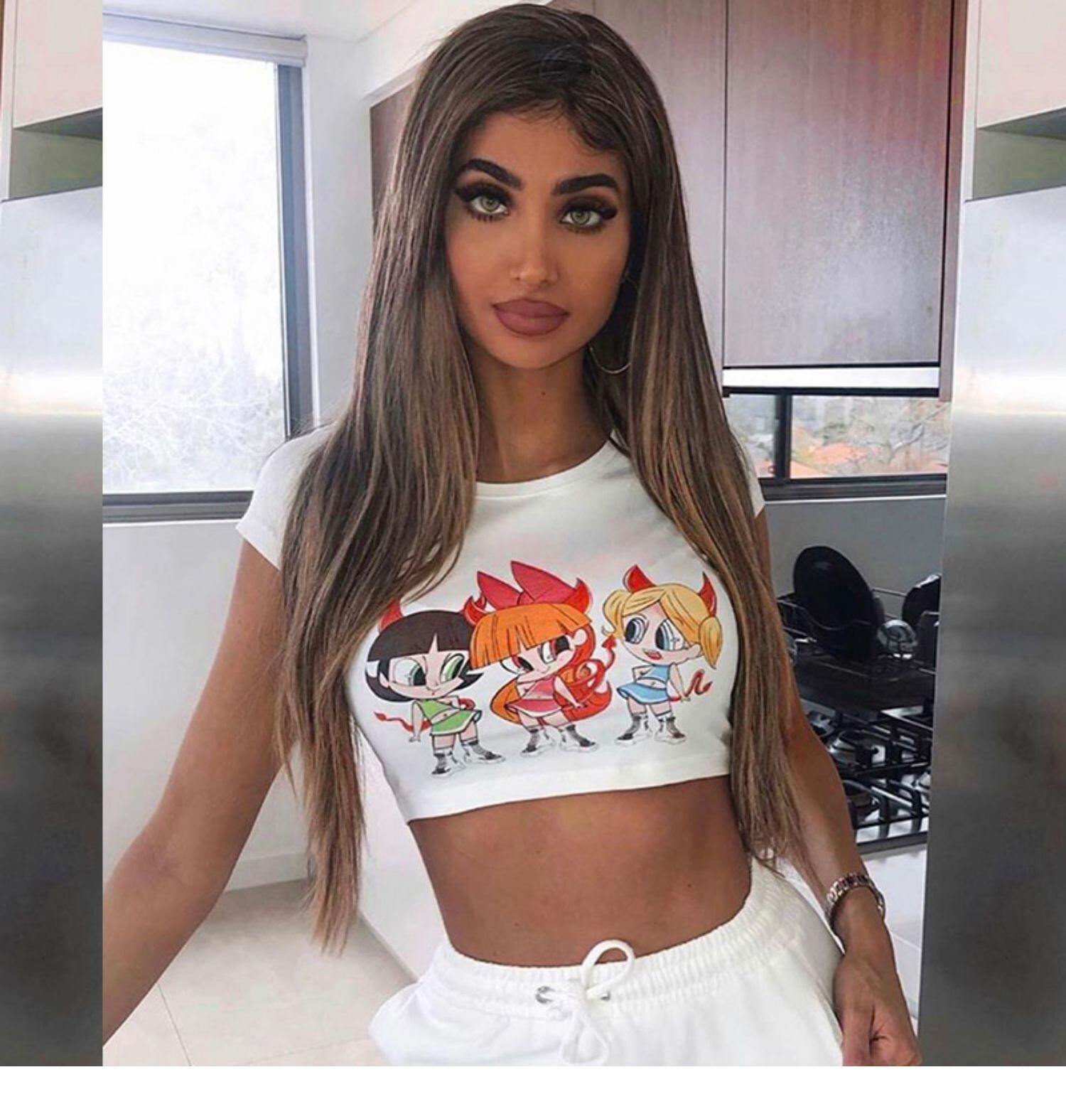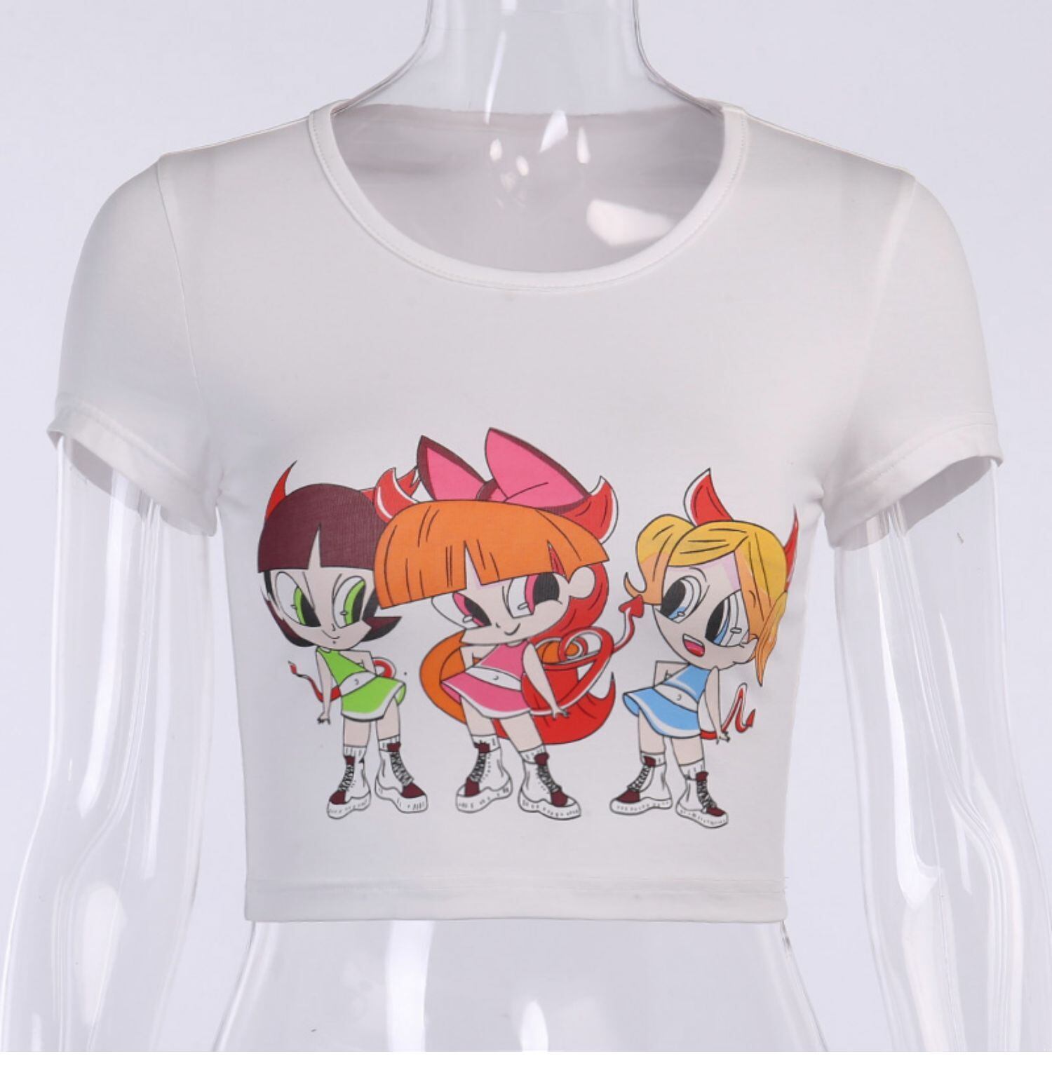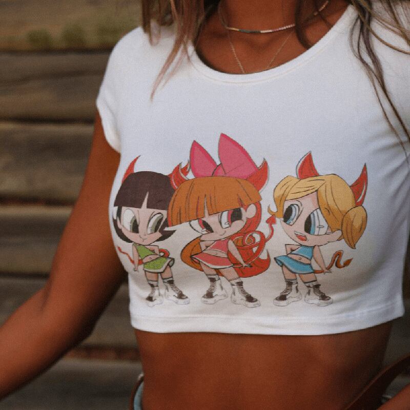 instaパーソナライズされた漫画プリントtシャツ女性ヨーロッパと米国ins新しいスリムショー胸大きなセクシーな露出おへそトップ instahot6693314