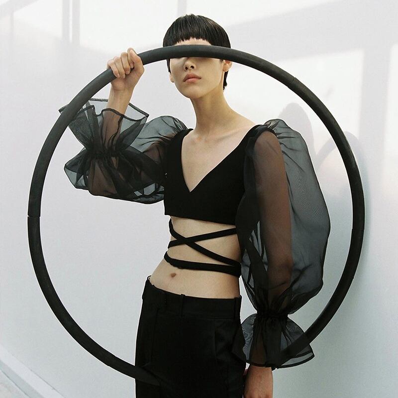ヨーロッパとアメリカのセクシーなトップス女性の夏のドレス慎重なマシンVネックデザインセンスメッシュスプライシングストラップ短いセクション露出おへそ長袖Tシャツ ショート ロング サマー 夏物 ヨーロピアン instahot6115707