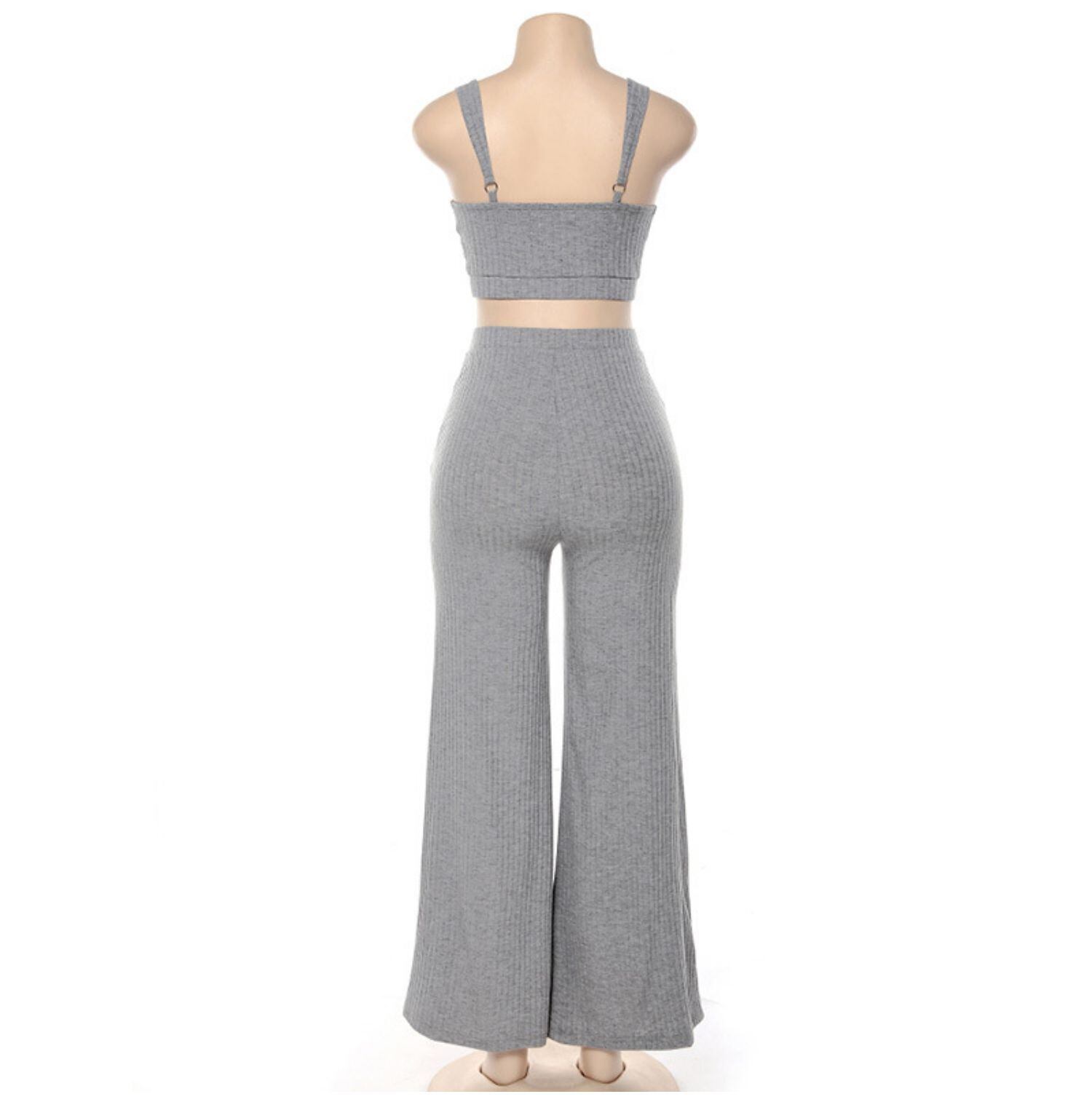 インスタセクシーキャミソールスーツ女性2019ヨーロッパとアメリカのファッション気質無地フレアパンツツーピーススーツ レッド ソリッドカラー ヨーロピアン instahot7874393