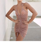 instaセクシーな視点ストラップドレス女性ヨーロッパとアメリカのインネット赤いスリムプリーツ巾着バッグヒップスカート レッド ヨーロピアン instahot0210583