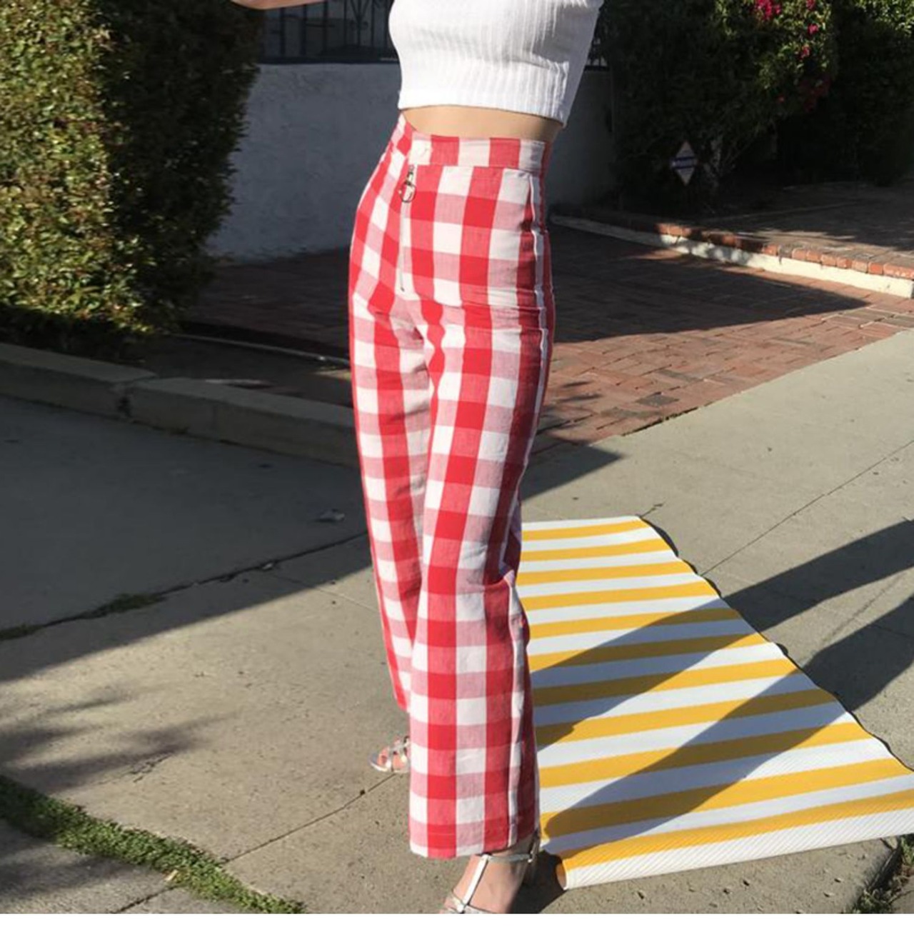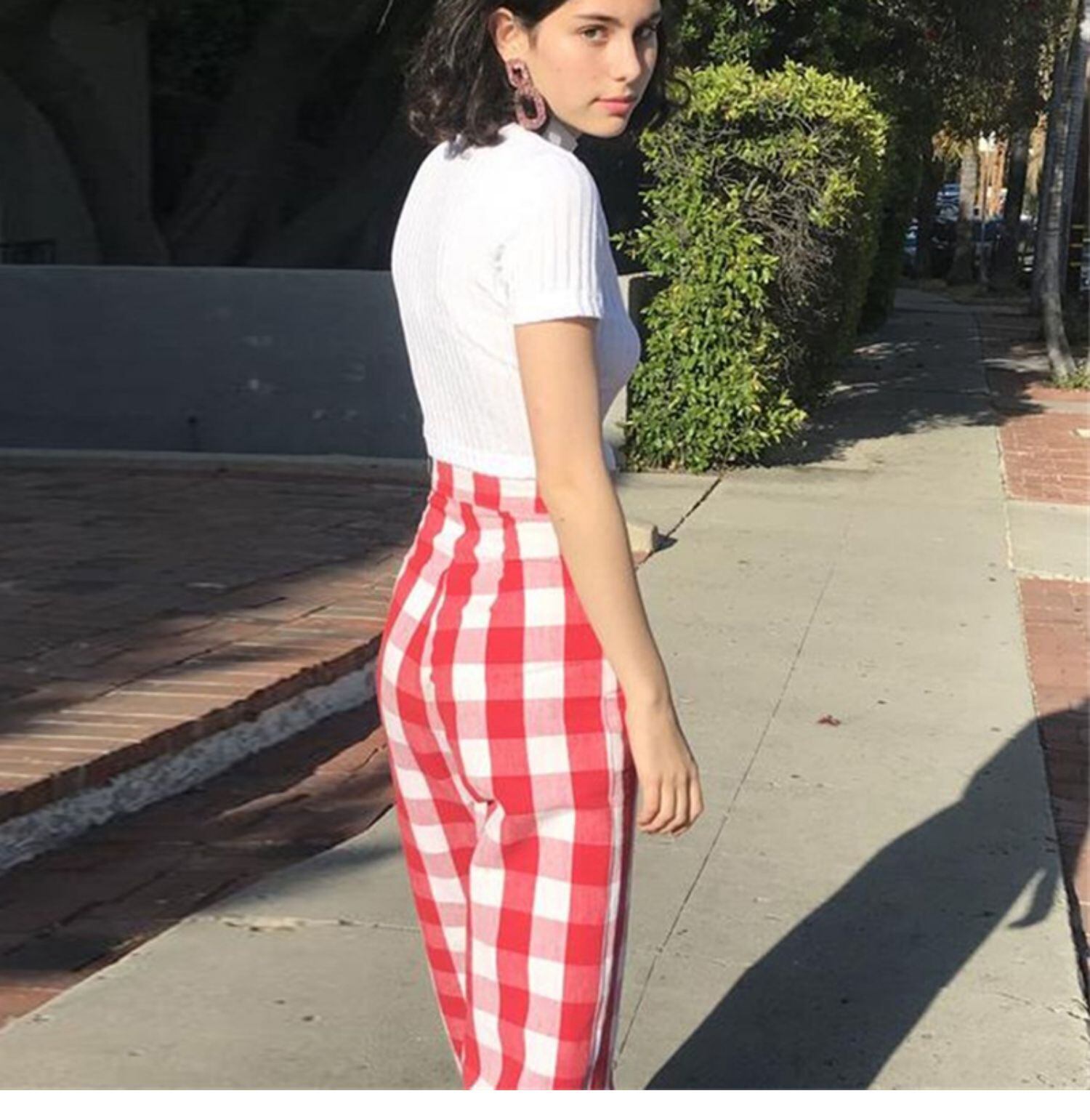 インスタファッションチェック柄カジュアルパンツ女性のヨーロッパとアメリカのins新しいハイウエストルーズストレートチューブワイルドハーレムパンツ ハイウェスト ヨーロピアン instahot5978810