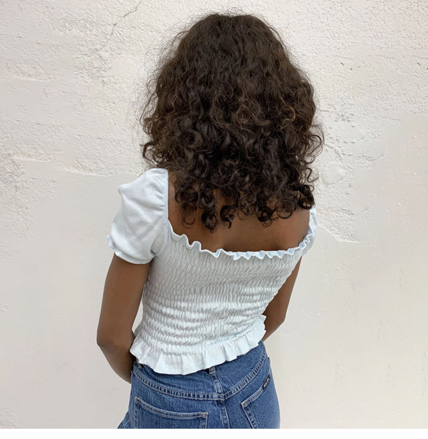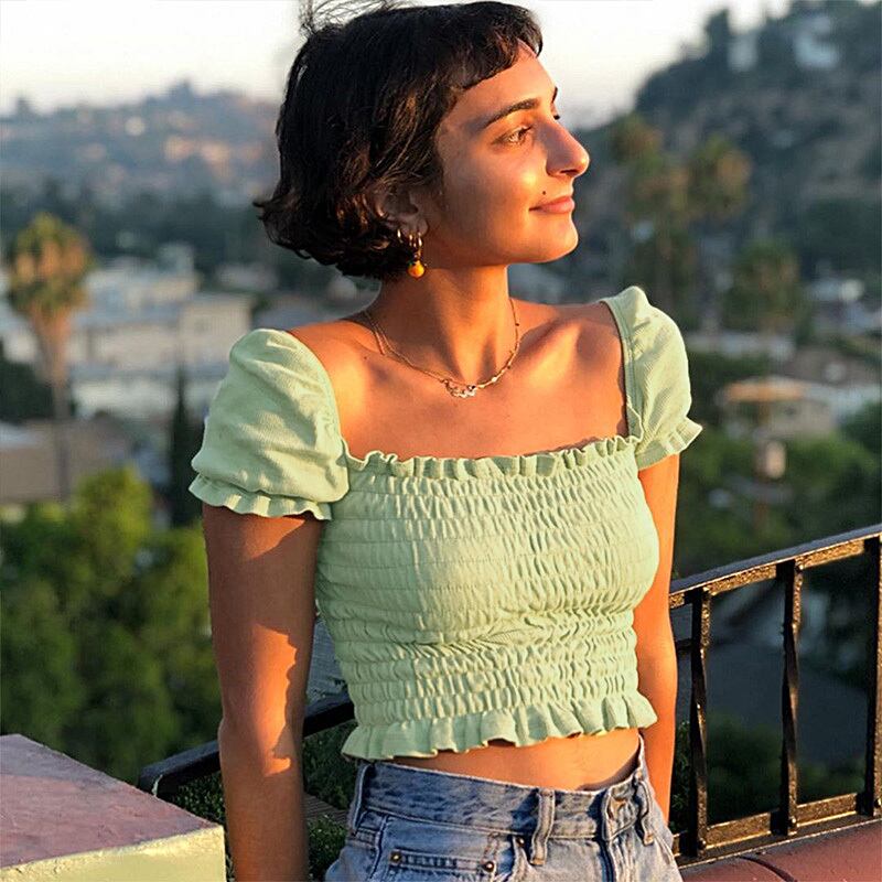 インスタファッションスクエアネック菌半袖Tシャツ女性のヨーロッパとアメリカのins人格ウエスト痩身トレンディトップ スクウェア ヨーロピアン instahot8978423