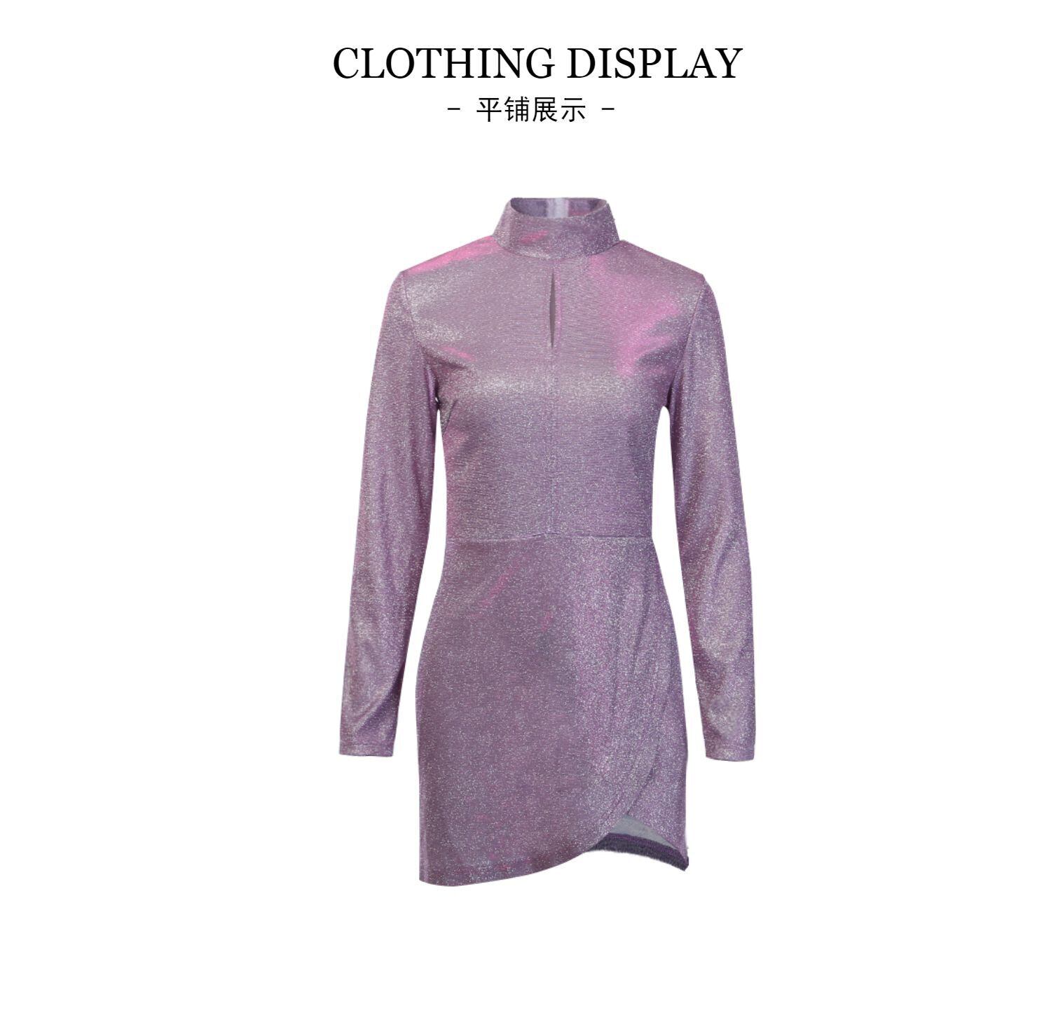 ヨーロッパとアメリカのセミハイカラースリムドレス女性の気質野生長袖セクシーな中空ハイウエスト不規則なスカート ハイウェスト ロング ヨーロピアン instahot8053669