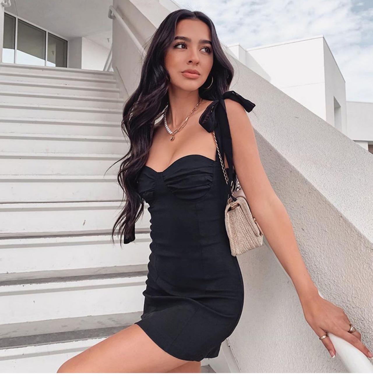 インスタファッションのボウストラップドレスの女性のヨーロッパとアメリカのins新しいスリムスリミングワイルドバッグヒップスカート リボン ヨーロピアン instahot6399595