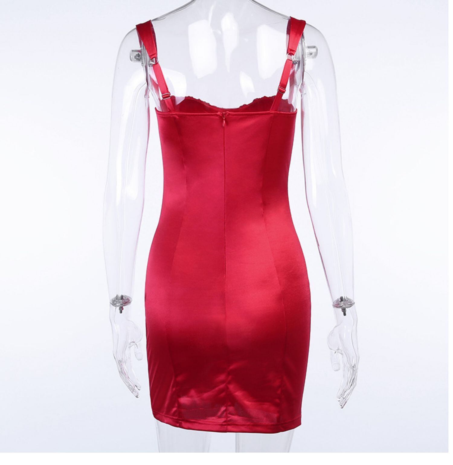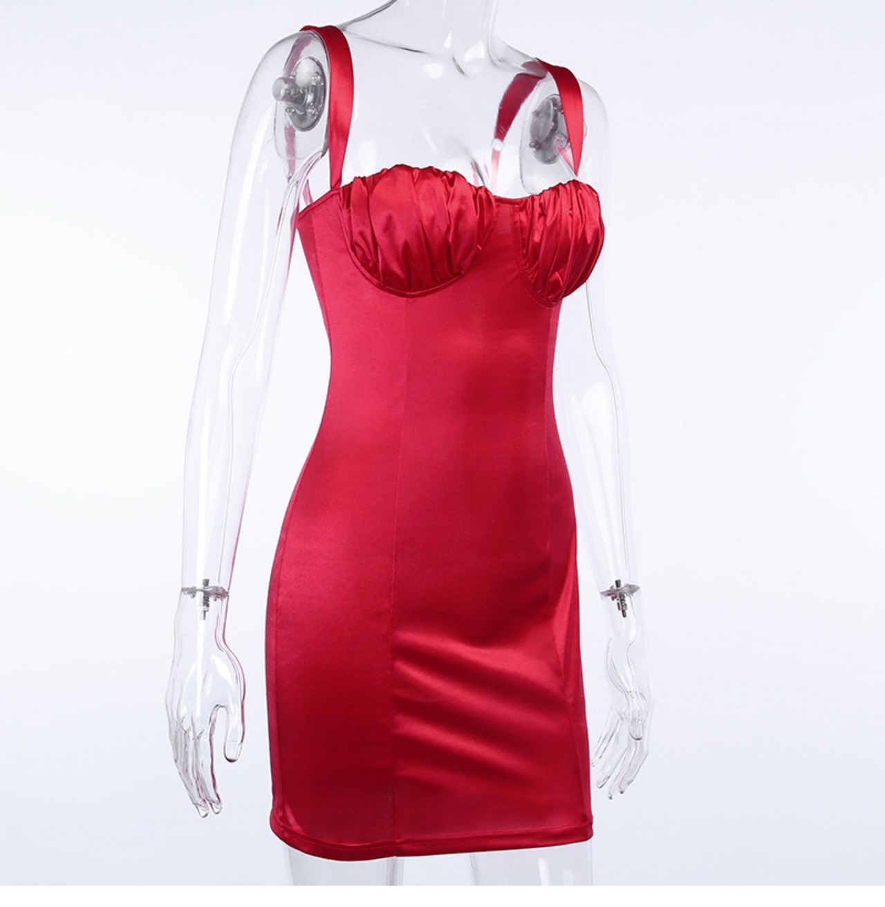 インスタヨーロッパとアメリカの赤いサスペンダードレス女性イン新しいファッションしわショー胸大きなセクシーなバッグヒップスカート レッド ヨーロピアン instahot6101845