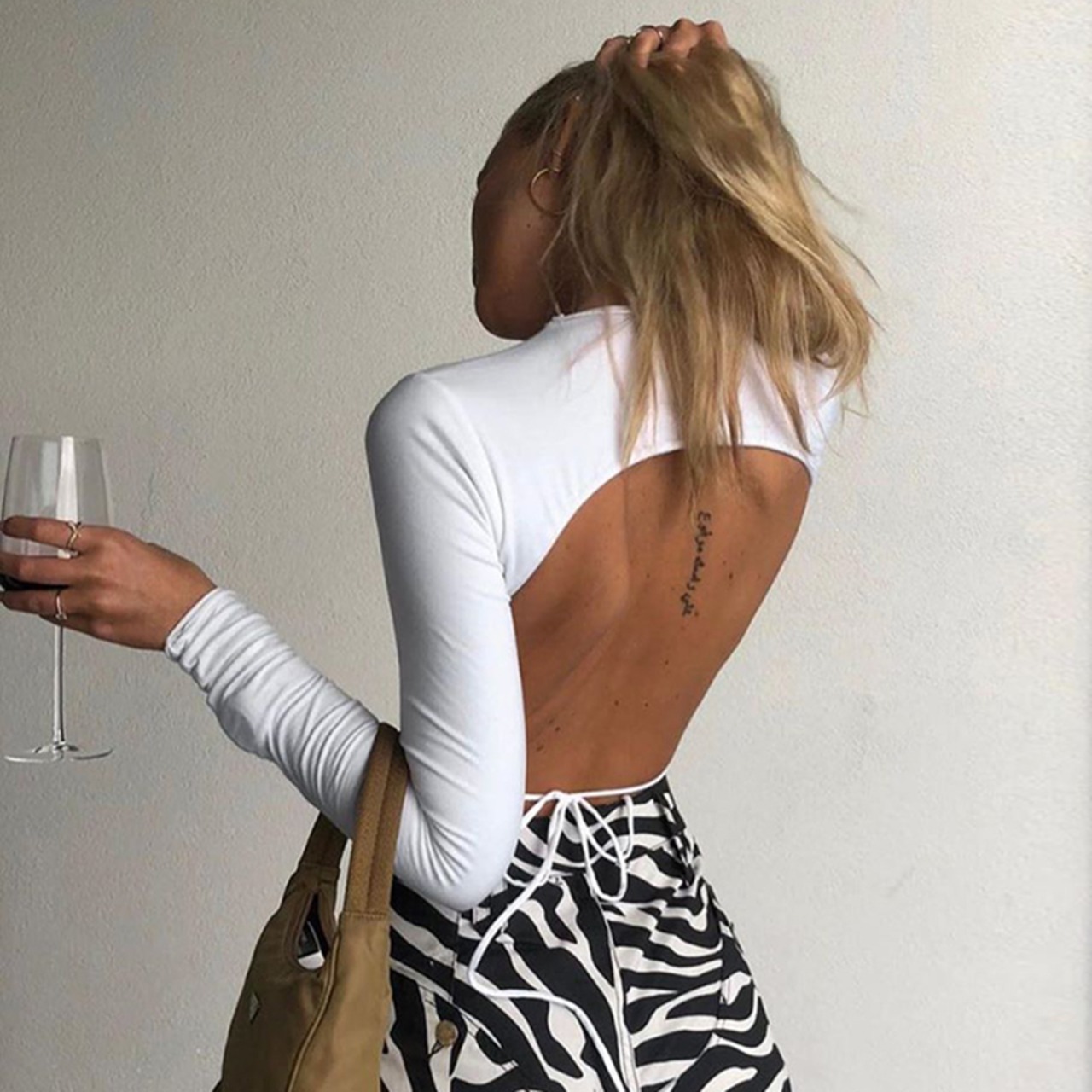 insスーパーファイヤーネット赤いボトムスのシャツの女性のヨーロッパとアメリカのセクシーな背中の開いたレースの無地の野生の短いタイトな長袖Tシャツ ショート ロング レッド ソリッドカラー ヨーロピアン instahot2225326