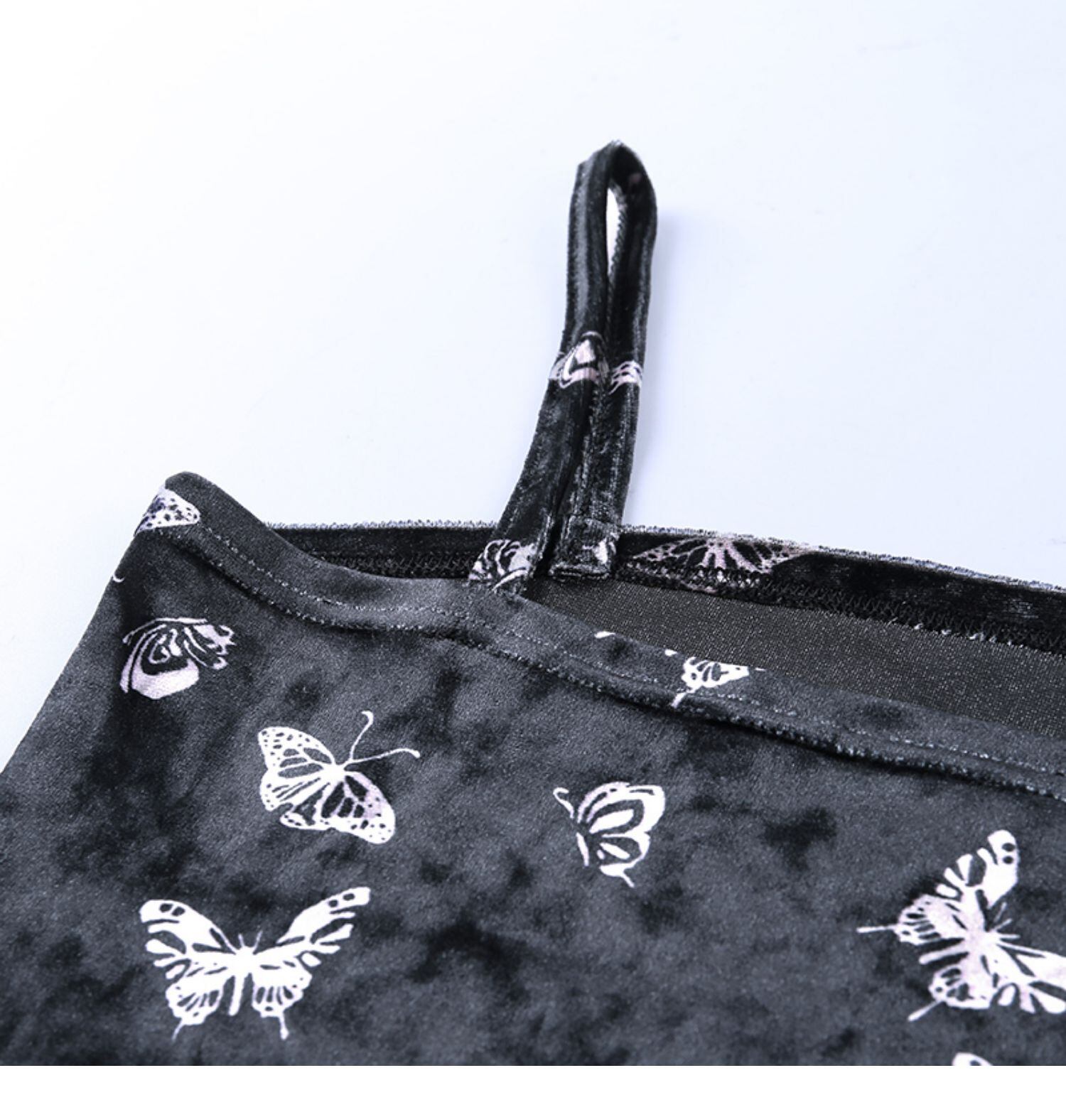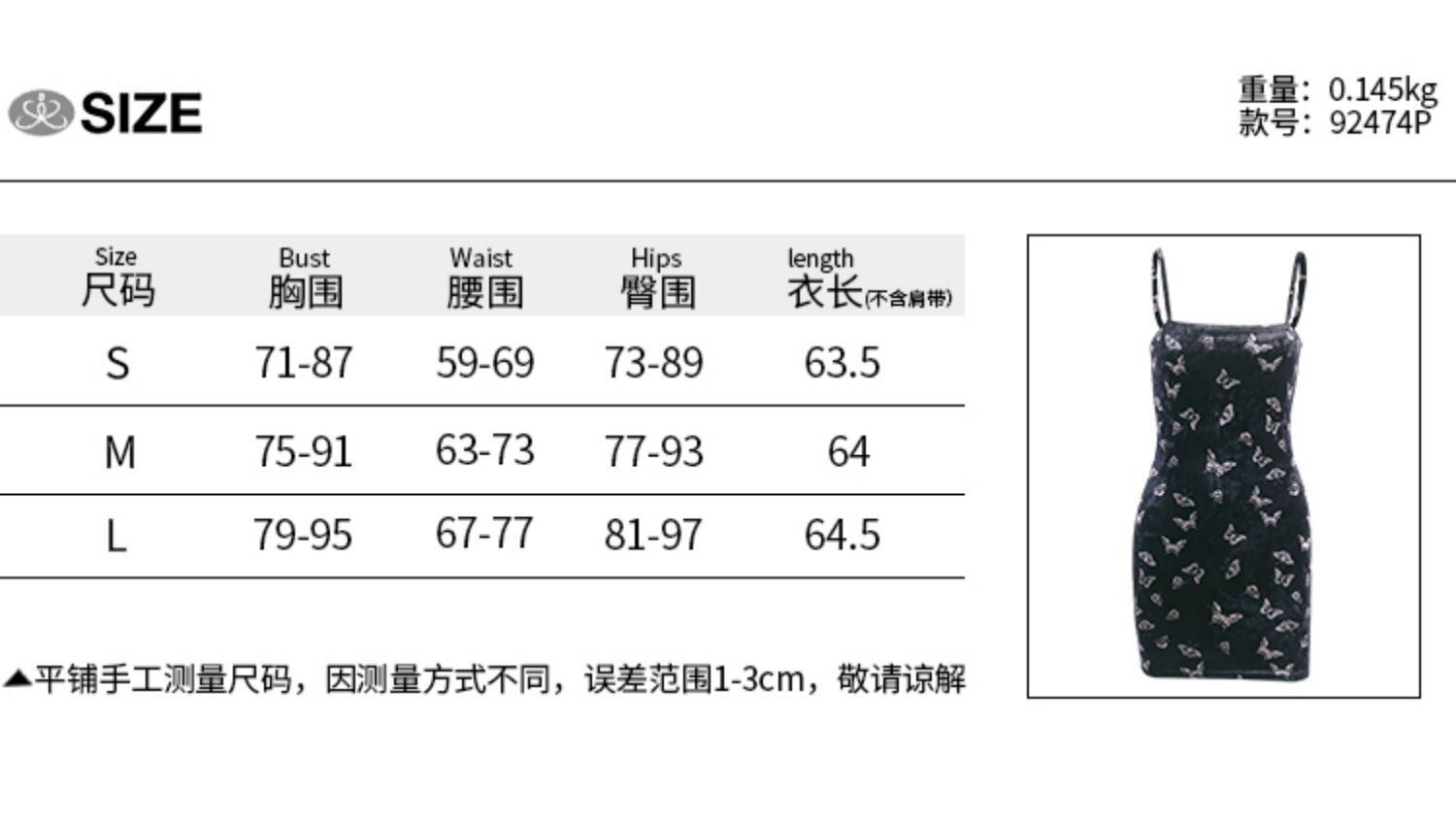 instaファッションバタフライプリントサスペンダードレス女性ヨーロッパとアメリカのins新しいスリムなスリムな黒のスカート ブラック ヨーロピアン instahot4519216