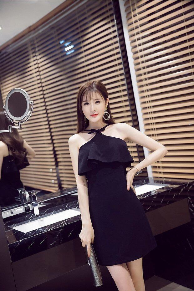 ナイトクラブの女性2020年夏の新しいセクシーなハンギングネックストラップレスフリルスリングスリムは薄いパッケージヒップドレスでした サマー 夏物 Sexy韩衣坊1803420