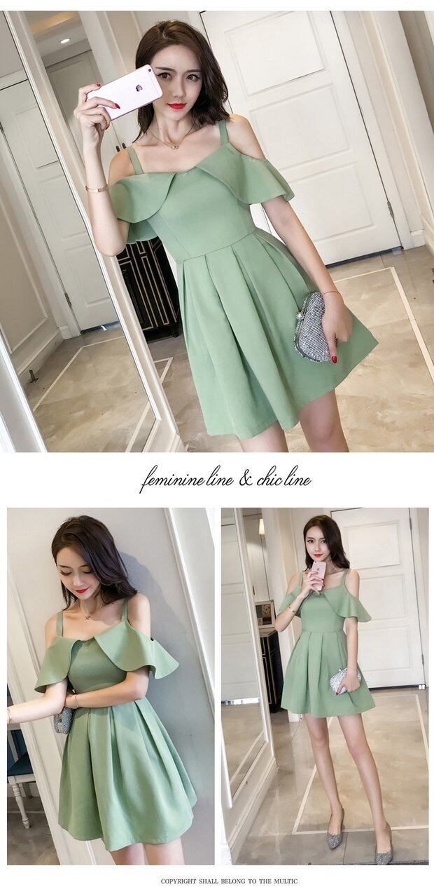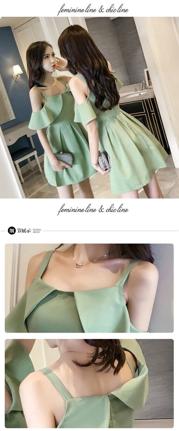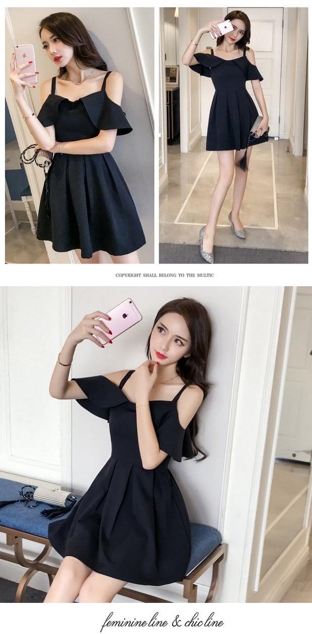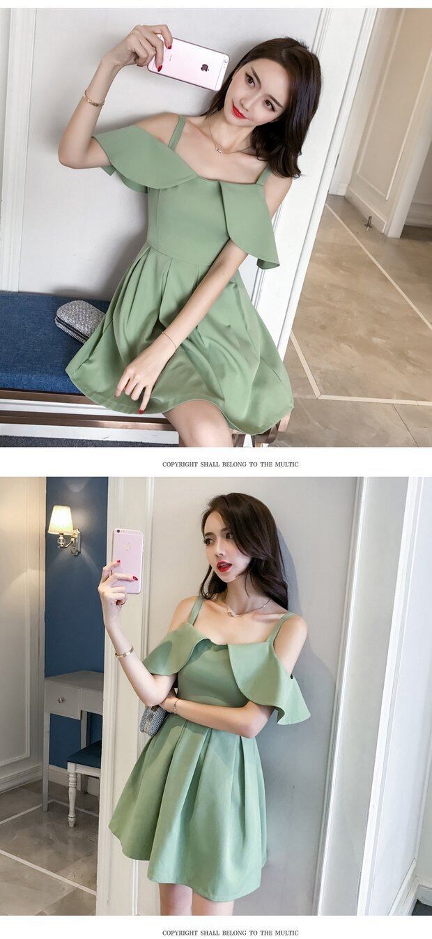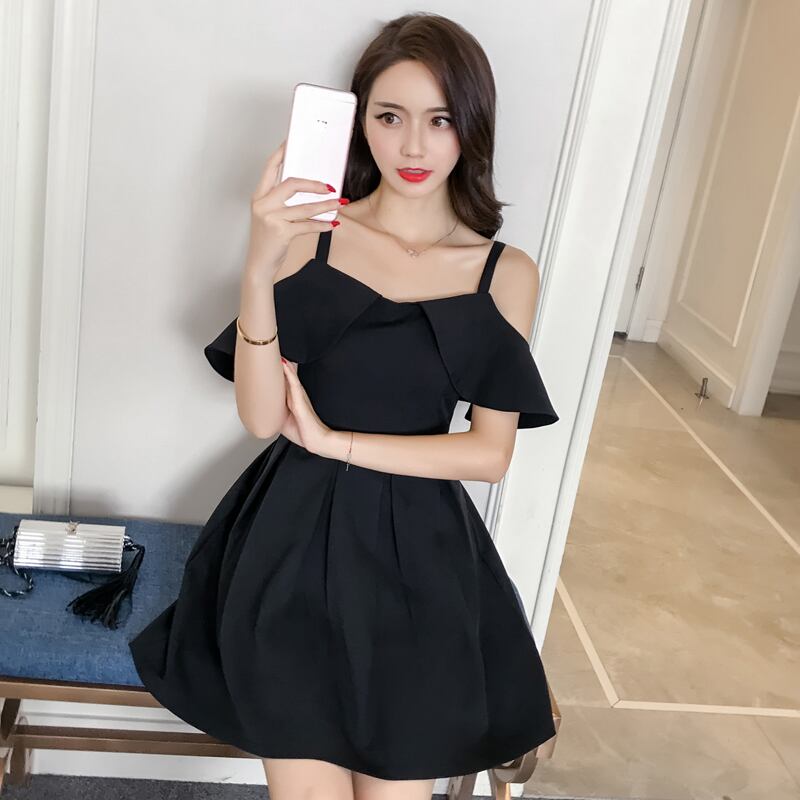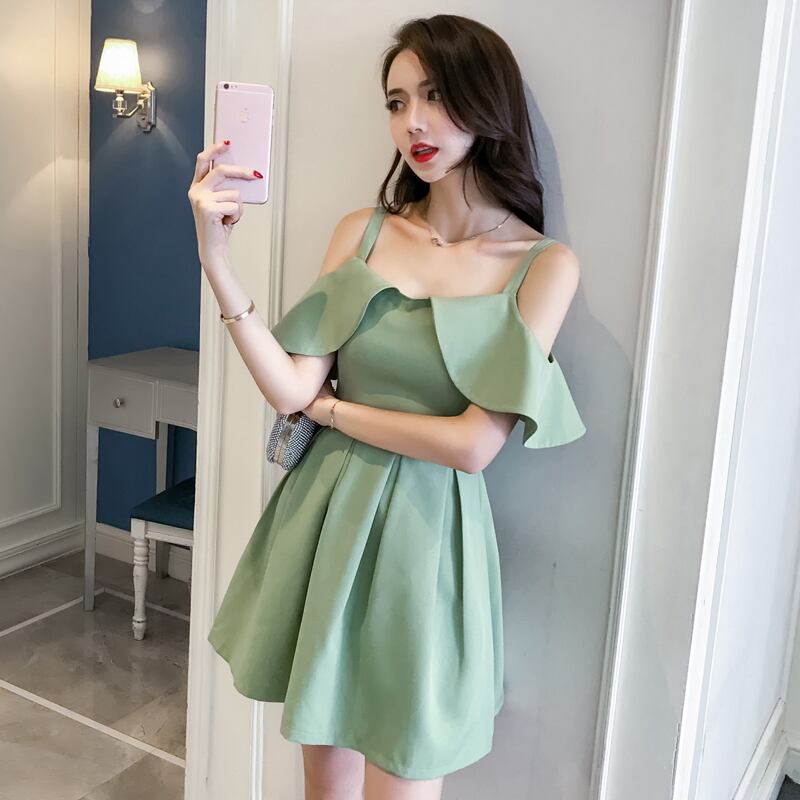 2020夏の新しい女性のボディ痩身ナイトクラブセクシーな気質Vネックハイウエストホルターネックワードサスペンダードレス ハイウェスト サマー 夏物 Sexy韩衣坊9169114