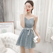 スーパーフェアリースイートのプチショートレディースオフショルダーノースリーブ気質ストラップドレスエグニースタイル2020新バージョン 大人ガーリー スウィート キュート カジュアル Sexy韩衣坊3004405