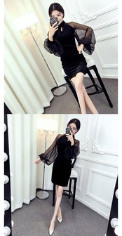 2020秋の新スタイルのセクシーなナイトクラブの女性のレトロな改善されたチャイナベルベットのランタンスリーブスリムスプリットドレス オータム 秋物 Sexy韩衣坊2438209