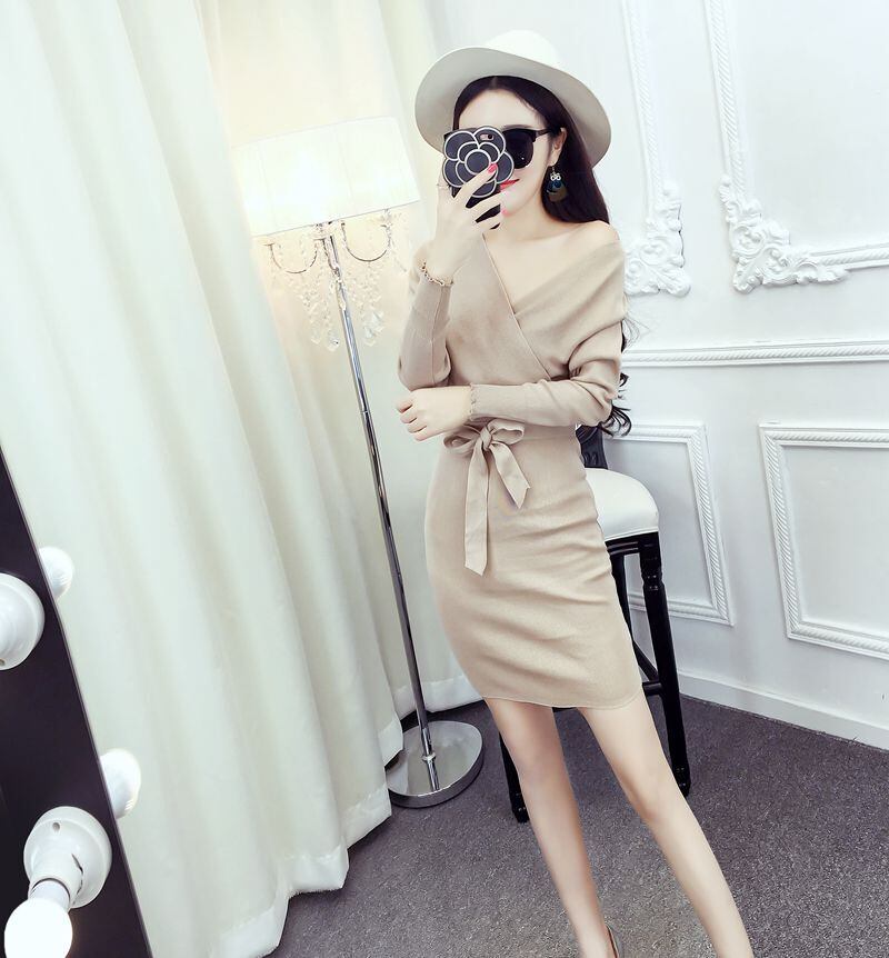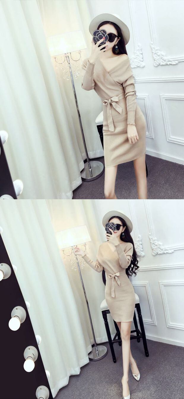 ナイトクラブの女性のセクシーなニットドレスバッグヒップ2020新しいスリムスリム長袖秋と冬のセータースカート潮 ロング オータム 秋物 ウィンター 冬物 Sexy韩衣坊2181508