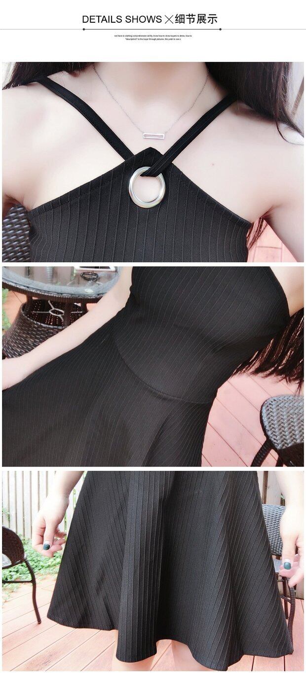 2020夏の新しいファッションの女性のセクシーな漏れやすいショルダーホルターストライプスリングスリムウエストスイングドレス潮 サマー 夏物 Sexy韩衣坊3269546