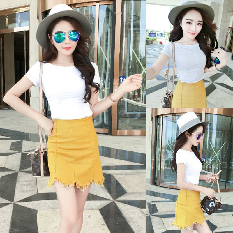 2020年春と夏の新しいファッションの女性のソリッドカラーのコットン半袖Tシャツトップ+薄いパッケージヒップショートスカートスーツの女性 スプリング 春物 サマー 夏物 Sexy韩衣坊2350039