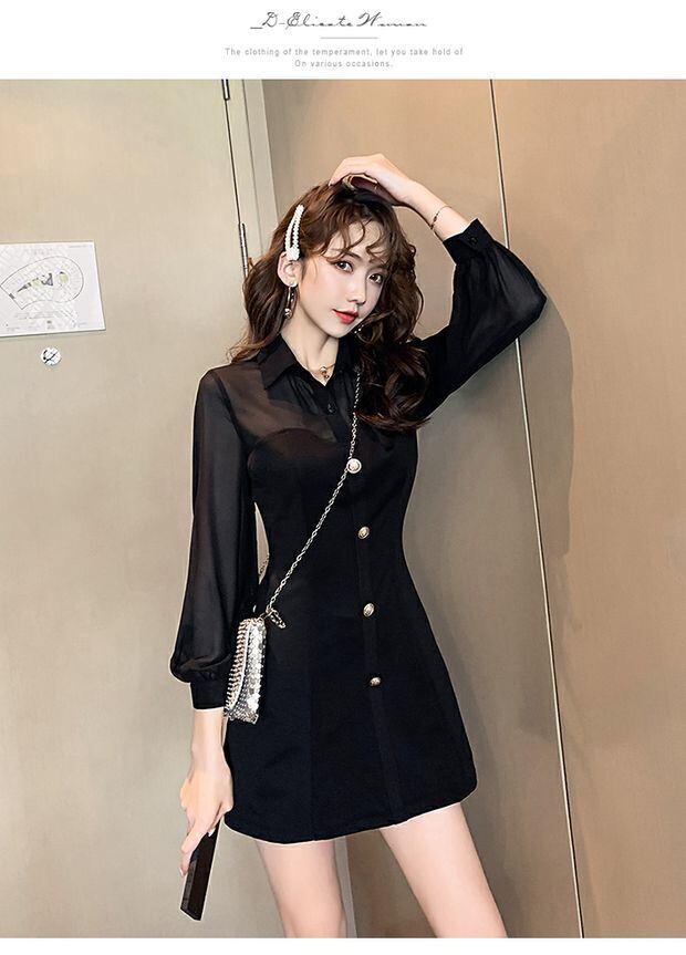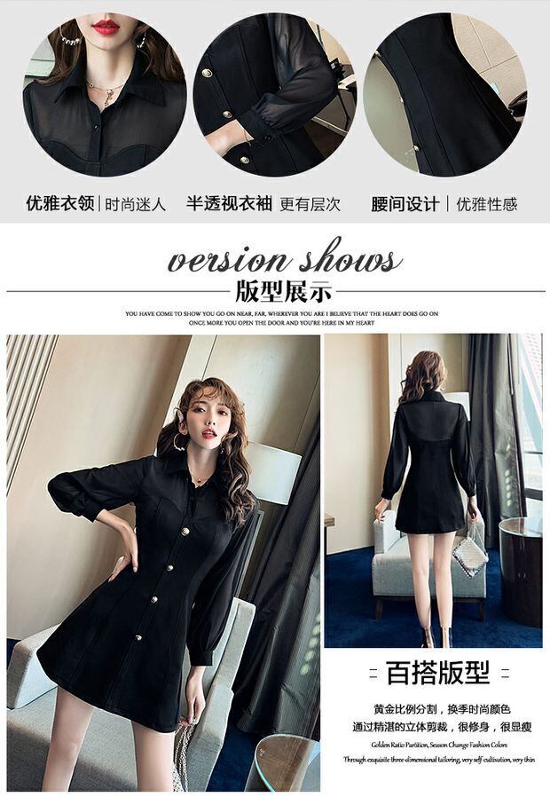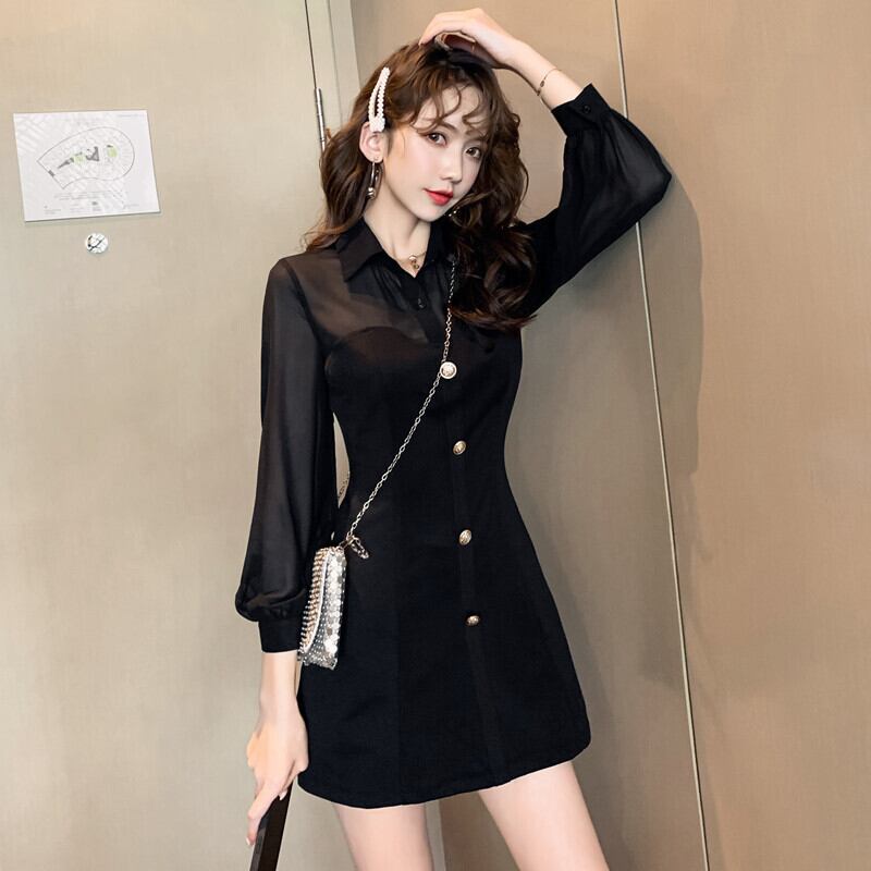 2020新しい女性の気質シフォン初秋の女性のスーツエインスタイルスリム長袖のドレスツーピースの潮 ロング オータム 秋物 Sexy韩衣坊5068452