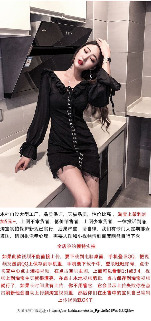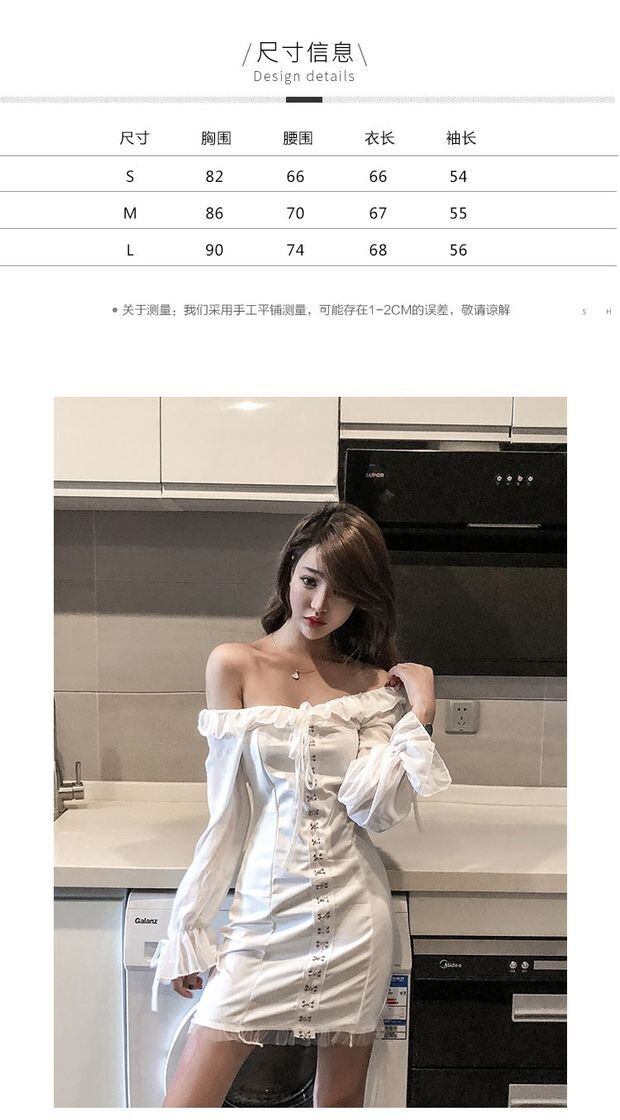 2020秋新作レースアップフリルオフショルダースリムセクシー長袖フェイクツーピースバッグヒップドレスタイド ロング オータム 秋物 Sexy韩衣坊7052313