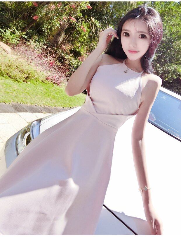 2020夏の新しいナイトクラブセクシーなハンギングネックストラップレスウエストスリムスリム甘い美容ドレスノースリーブビッグスカートスイングドレス 大人ガーリー スウィート キュート カジュアル サマー 夏物 Sexy韩衣坊8998622