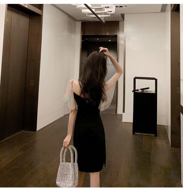 フランスのレトロな小さな黒いドレス夏の気質の妖精ドレススカートセクシーなVネックタイトなウエスト痩身ドレス潮 ブラック サマー 夏物 Sexy韩衣坊9767877