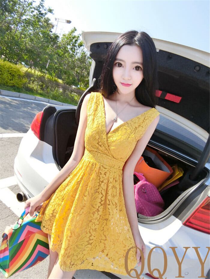 2020夏の新しい女性のファッションナイトクラブセクシーなVネックのレースのスリムドレス小さなドレスのスカートの潮 サマー 夏物 Sexy韩衣坊0706740