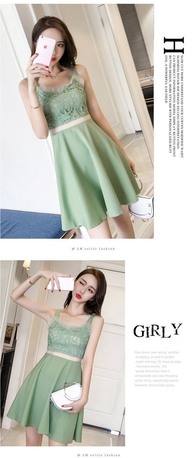 ナイトクラブ女性の夏2020新しいスリムなハイウエストレースステッチメッシュストラップセクシーホルタードレス潮 ハイウェスト サマー 夏物 Sexy韩衣坊0716333