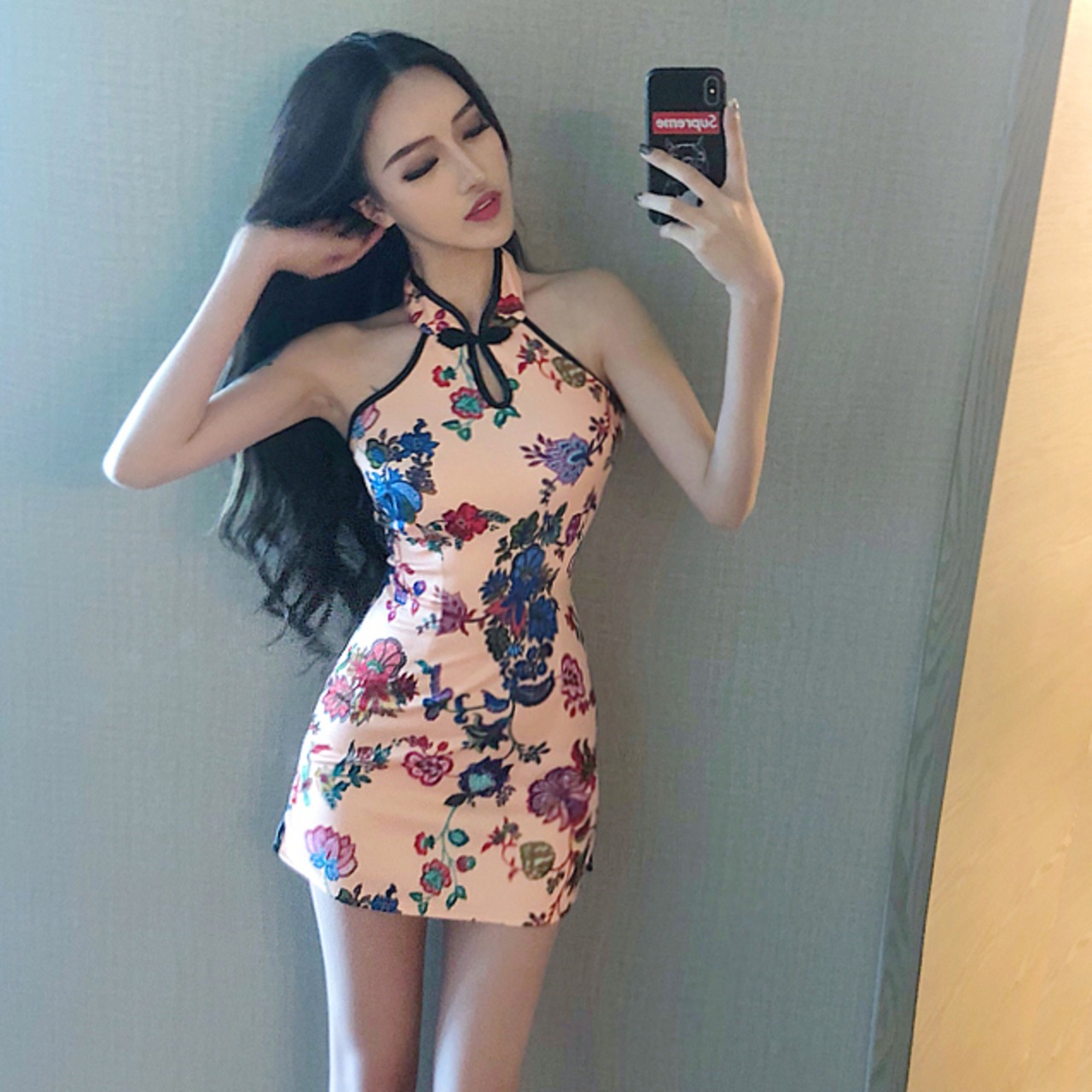 2019夏の女性の新しいアンカーパッケージヒップドレスは、小さな香りのスタイルの短い中国のセクシーなチャイナドレスを改善しました ショート サマー 夏物 Sexy韩衣坊8193002
